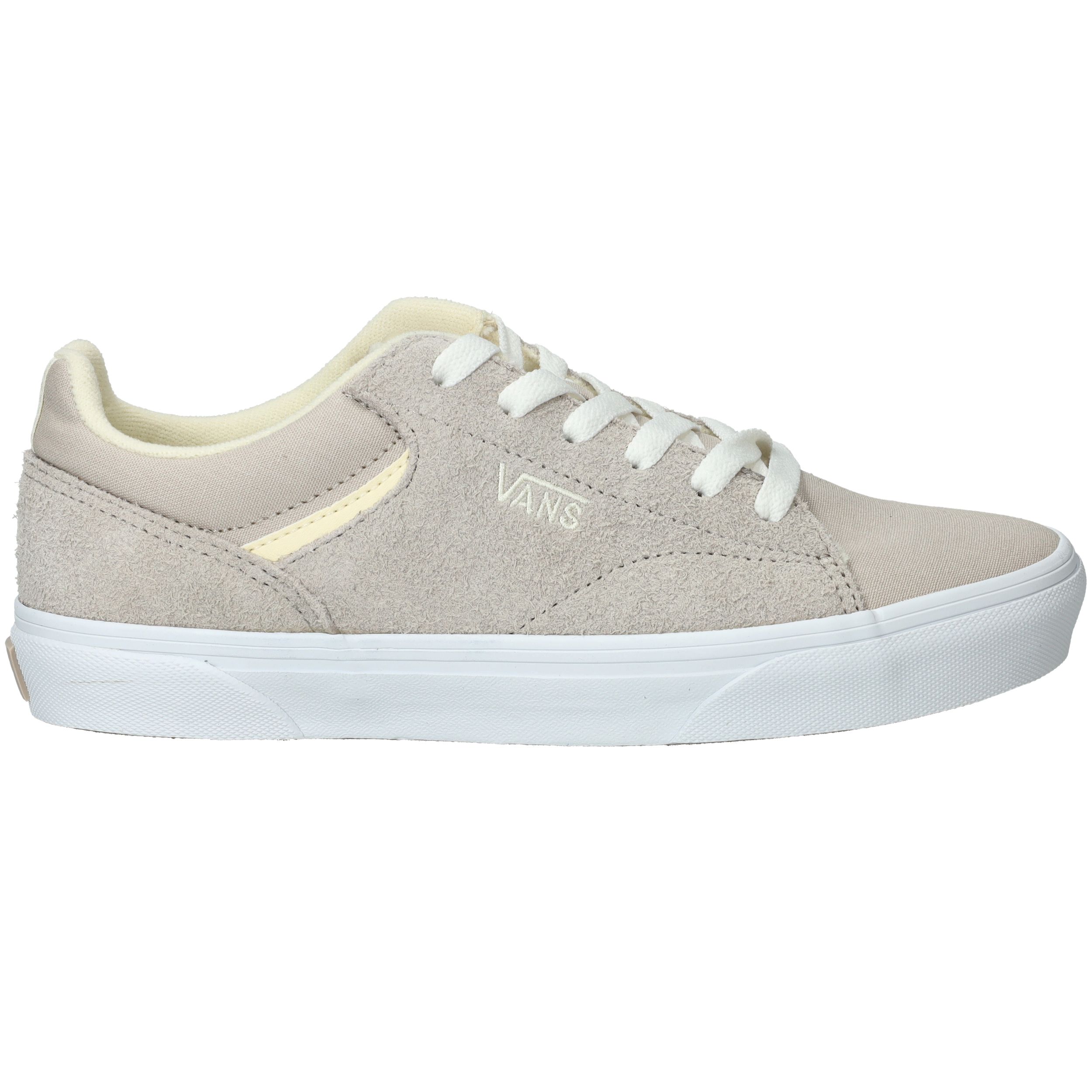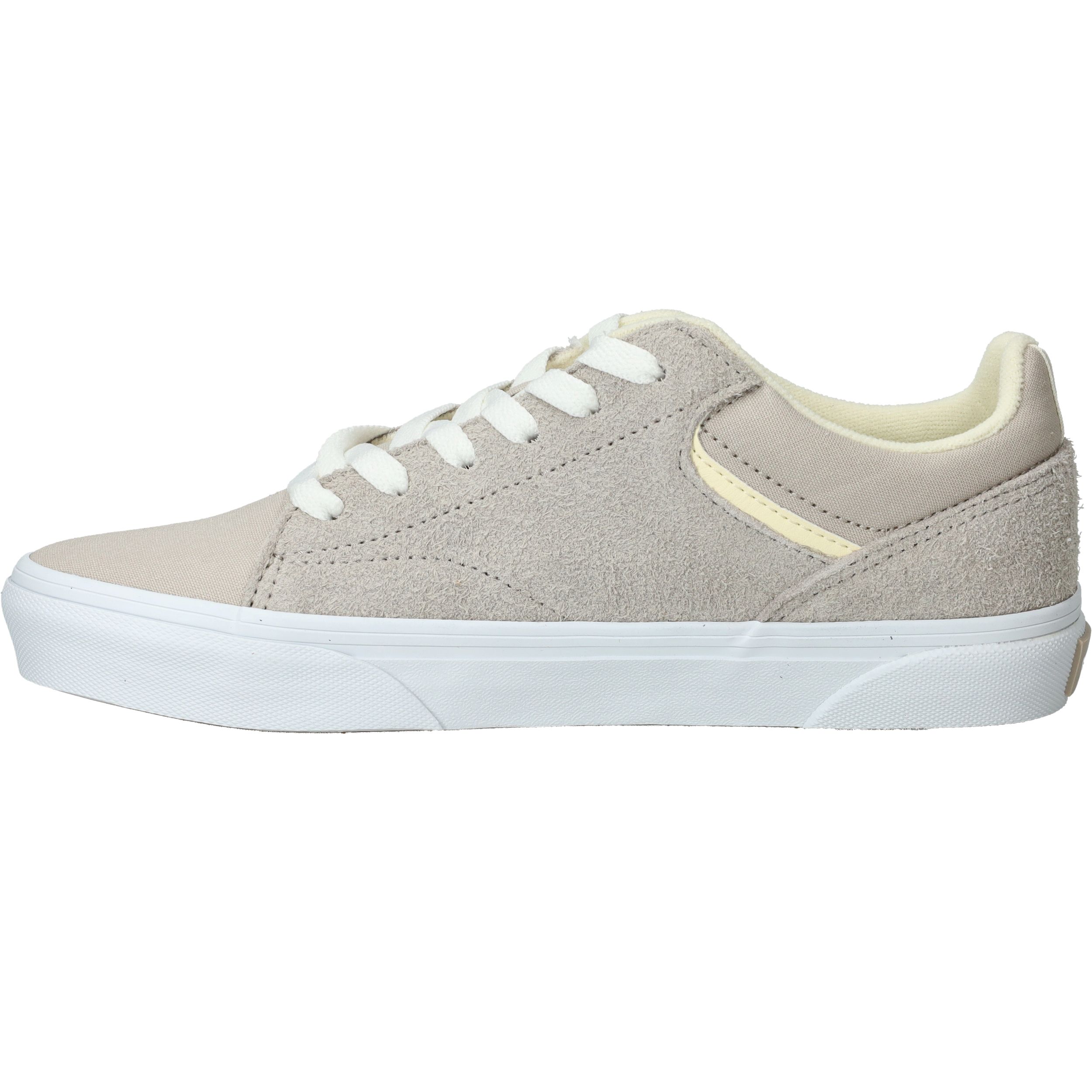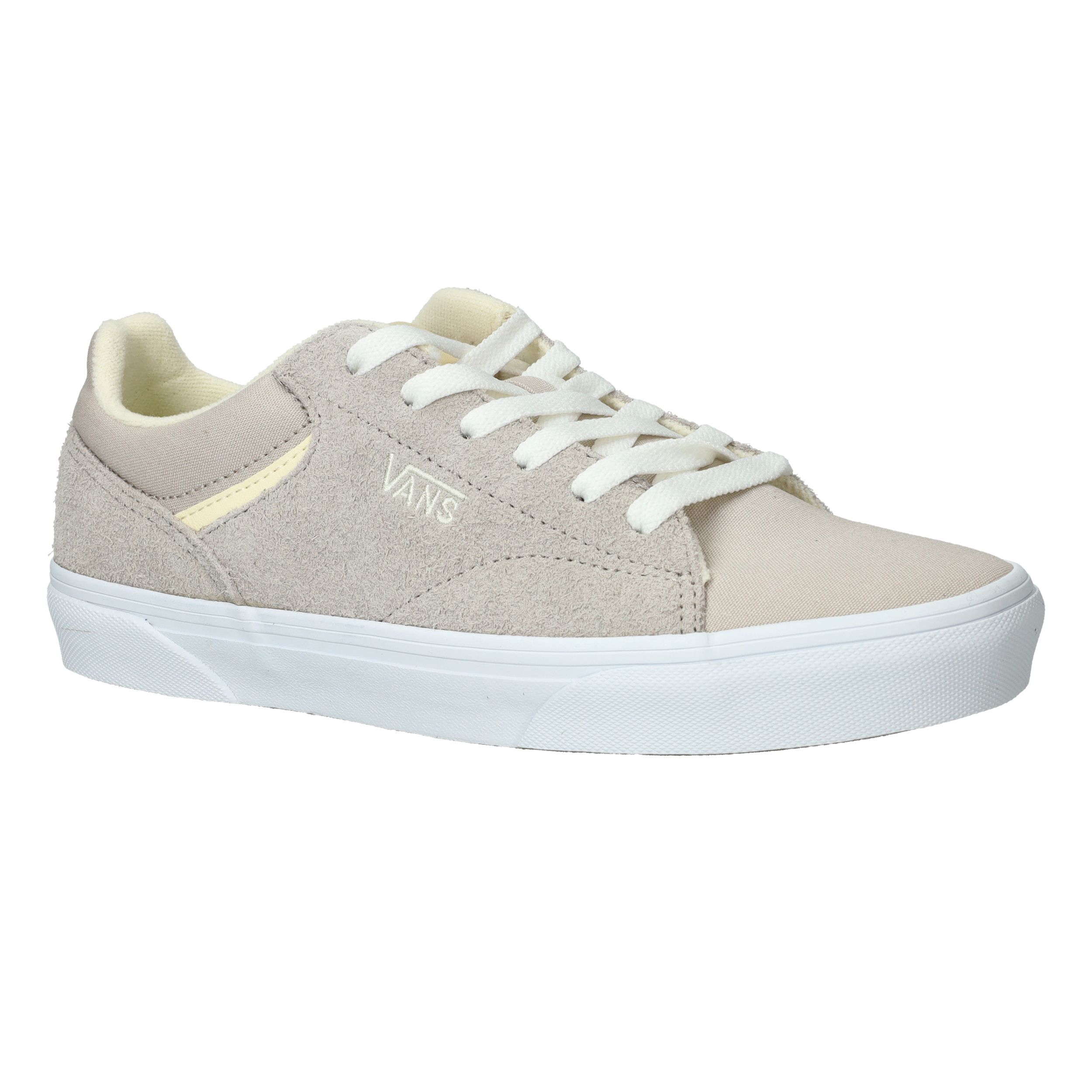 Gave Vans Seldan Hairy sneaker voor dames in een grijze kleur met licht gele accenten.