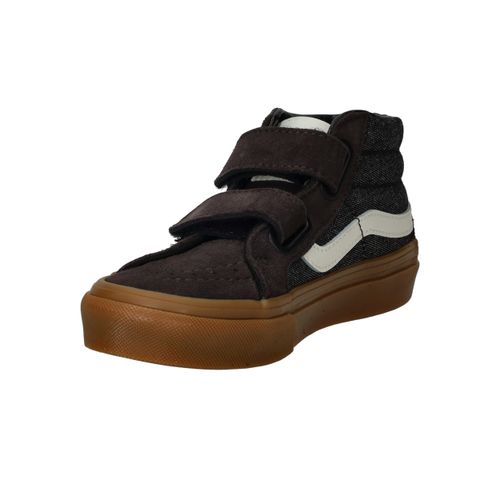 Deze stoere Vans boot in zwart met bruin is perfect voor actieve jongens die comfort en stijl willen combineren. Het bovenwerk is gemaakt van een combinatie van suède en textiel, wat zorgt voor een stevige en flexibele pasvorm. Dankzij de handige klittenbandsluiting kunnen kinderen de schoenen eenvoudig zelf aan- en uittrekken.