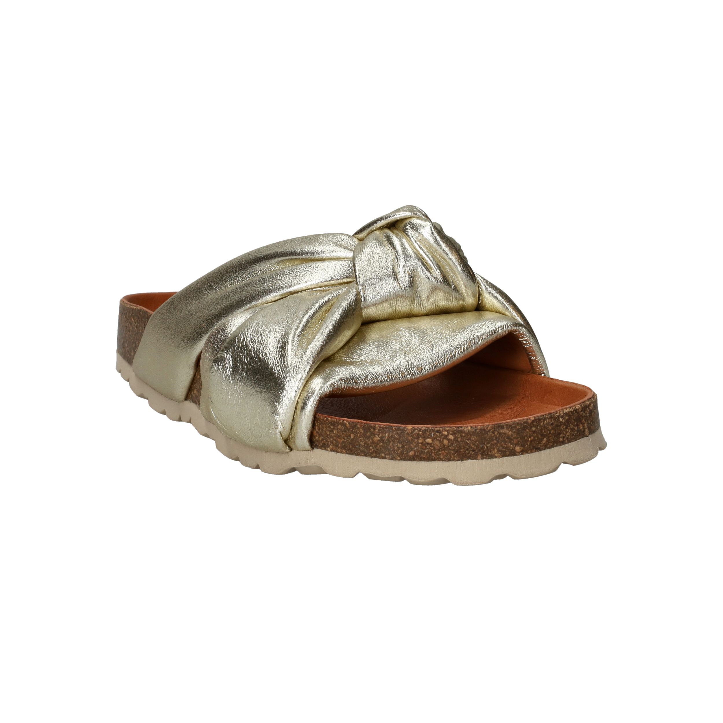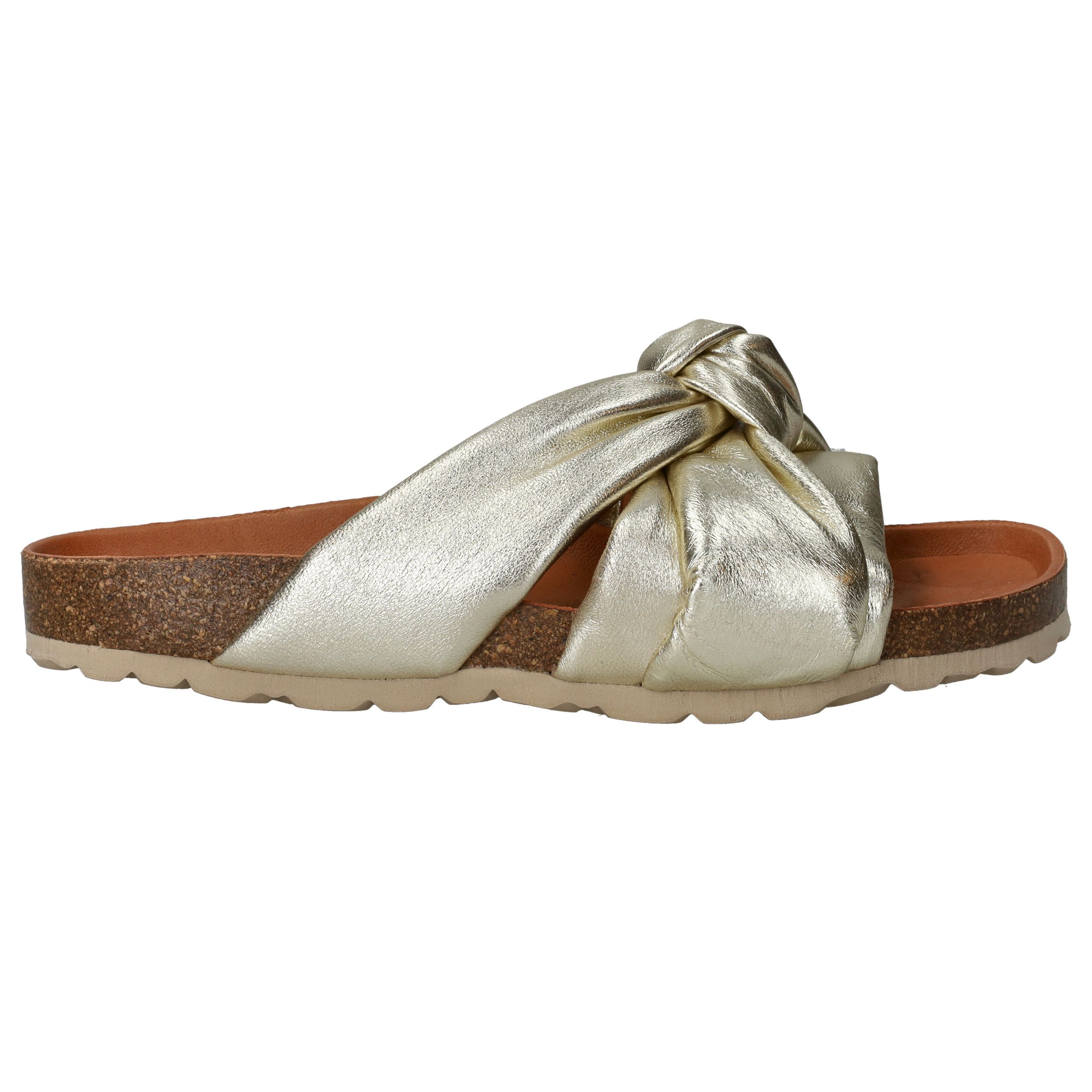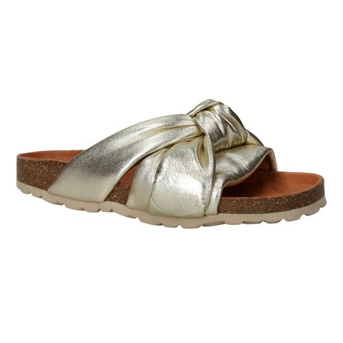 Ga voor deze stevige Verbenas Rainbow slipper! De damesslipper heeft een stralende metallic gouden kleur en speelse knoop.