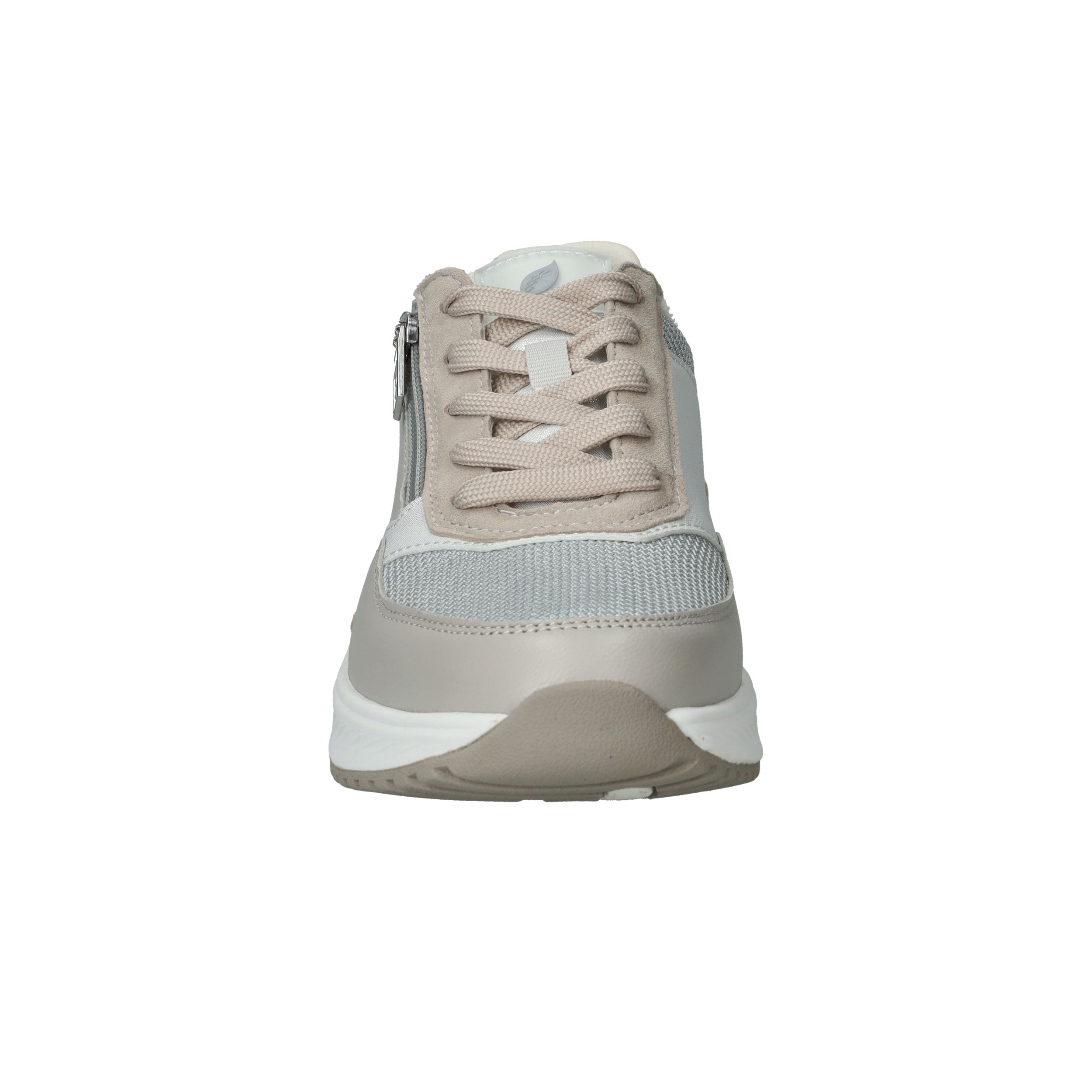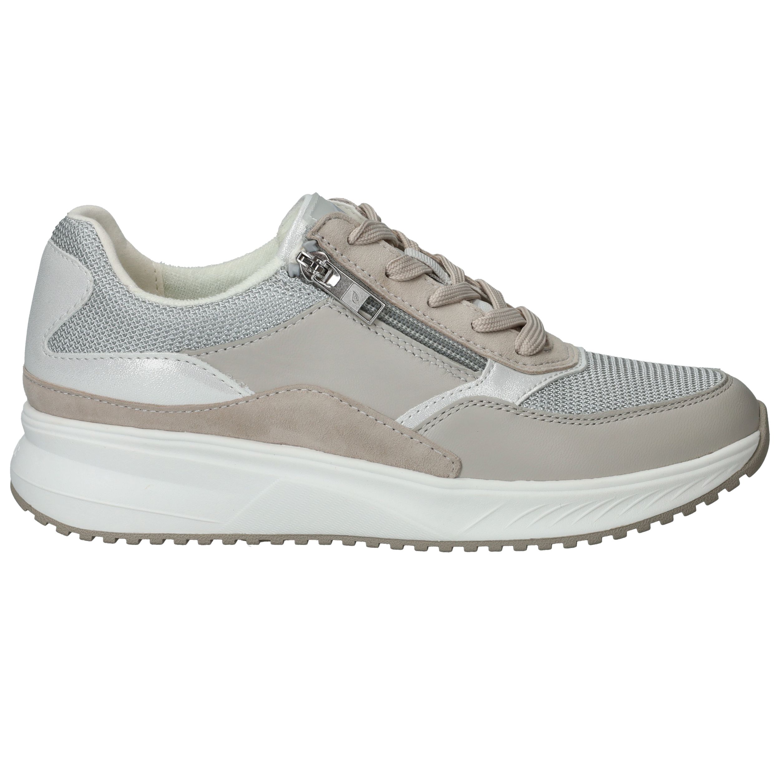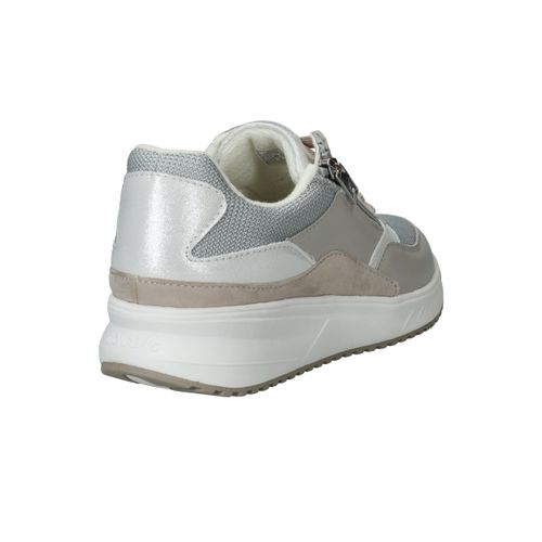 Deze sportieve sneaker van Waldläufer biedt ultiem comfort en een moderne uitstraling. Het model is uitgevoerd in lichtgrijs leer gecombineerd met mesh en suède accenten, waardoor de schoen een frisse en luchtige look krijgt. De stevige zool met lichte verhoging zorgt voor extra demping en stabiliteit, ideaal voor dagelijks gebruik. Dankzij de ritssluiting aan de zijkant trek je deze sneaker extra makkelijk aan en uit.