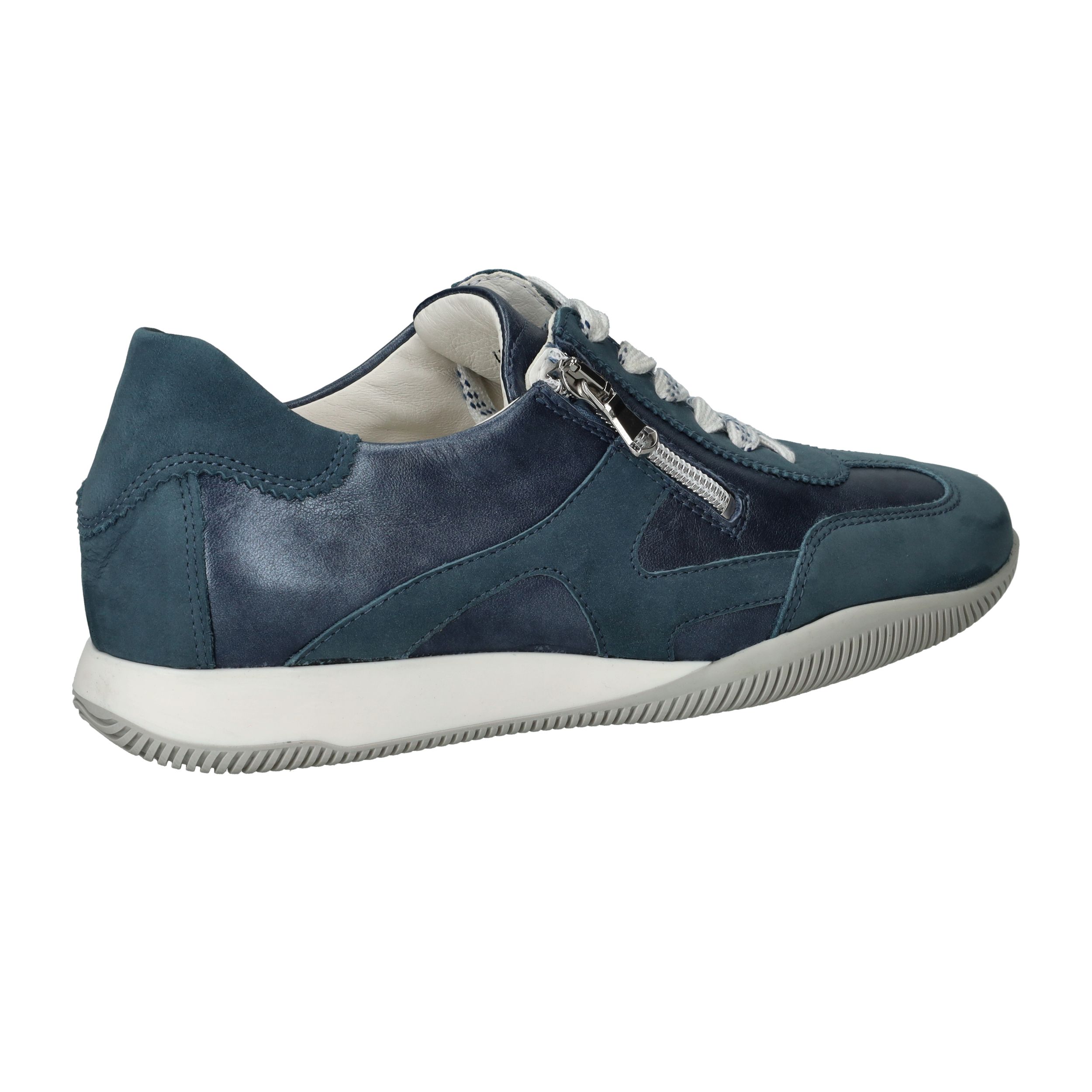 Deze elegante dames sneakers van Waldläufer combineren sportieve stijl met luxueuze materialen. De donkerblauwe kleur en metallic glans geven de schoen een chique uitstraling, terwijl het comfortabele ontwerp geschikt is voor elke dag. Deze sneaker heeft voetbreedte H en biedt extra gemak dankzij de rits aan de zijkant.