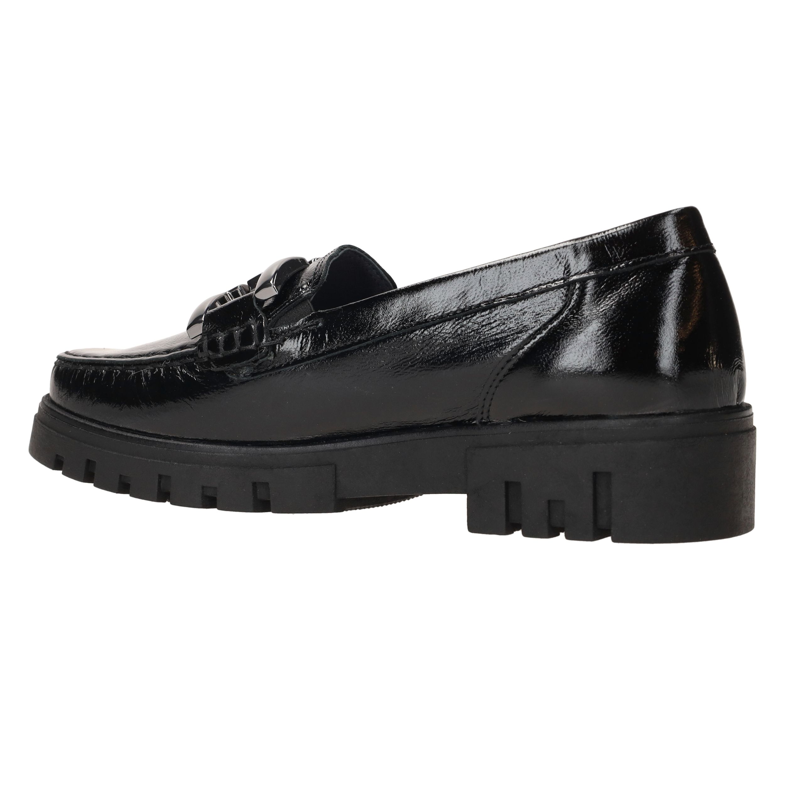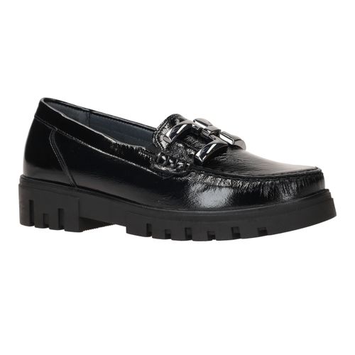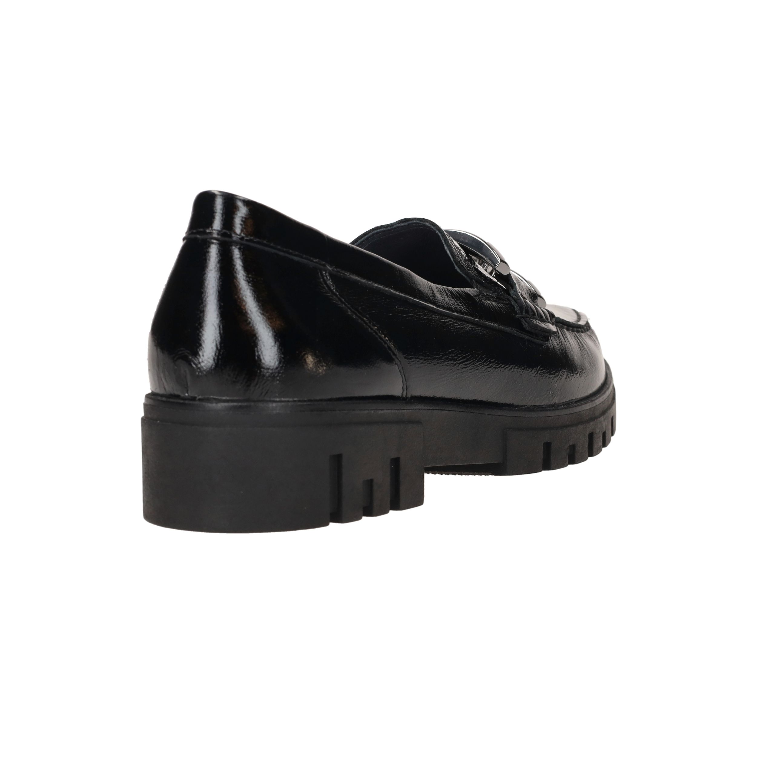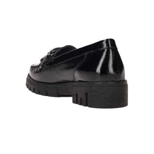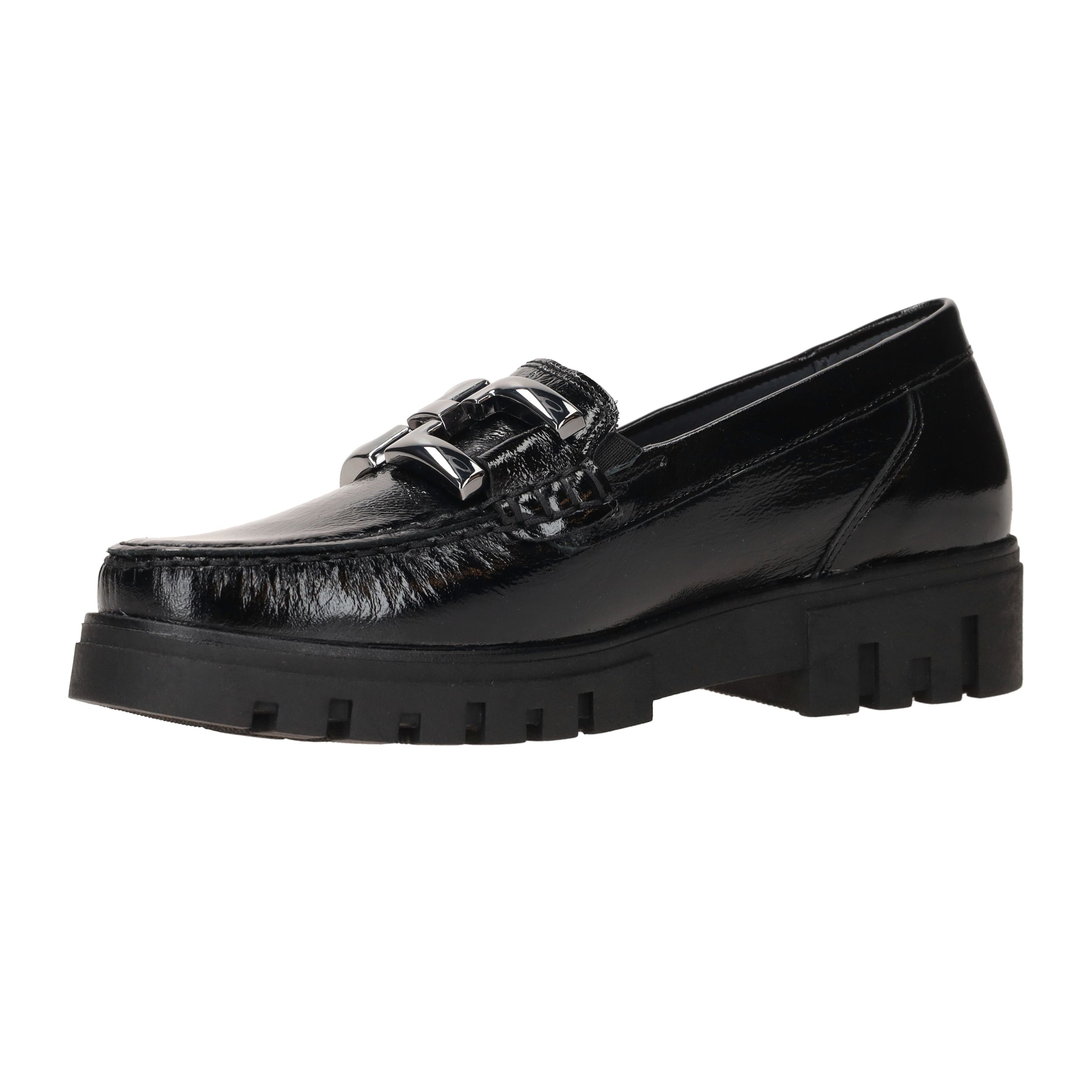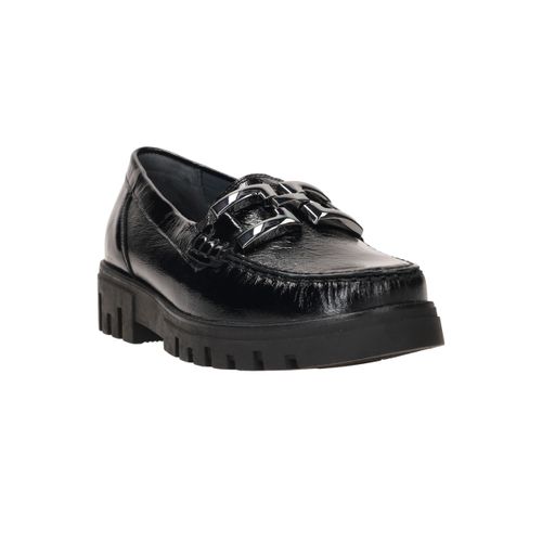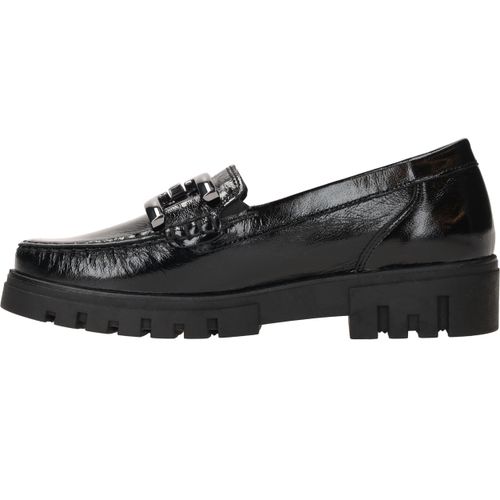 Deze stijlvolle dames instappers van Waldläufer combineren elegantie met comfort. De Serena is uitgevoerd in glanzend zwart lakleer en voorzien van een stoere schakel op de wreef. De robuuste zool biedt extra grip en demping, terwijl de comfortabele voetwijdte H zorgt voor voldoende ruimte voor de voorvoet.