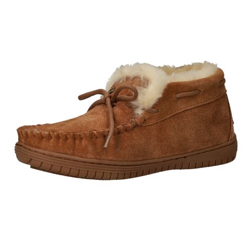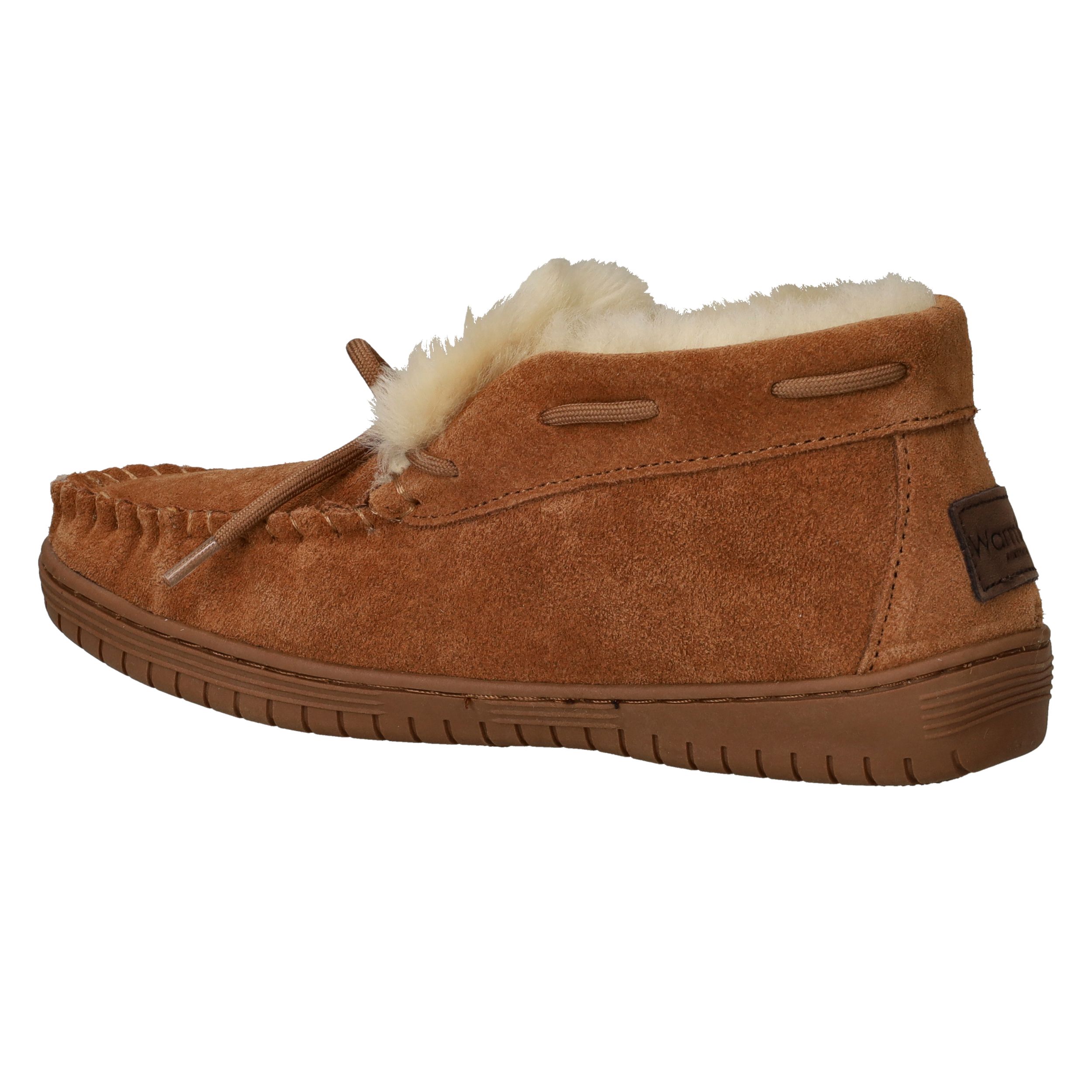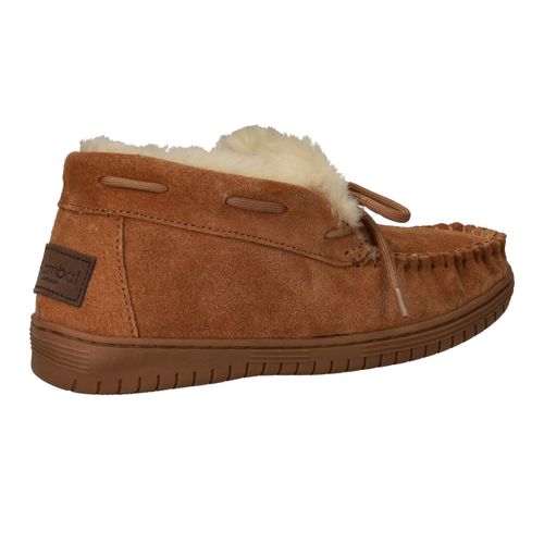 De Warmbat Bunya pantoffel voor dames biedt het ultieme comfort voor thuis. Deze warme pantoffel in een stijlvolle cognac kleur is gemaakt van zacht suède met een heerlijk warme voering van echte wol. De natuurlijke materialen zorgen voor een ademend en vochtregulerend effect, waardoor je voeten altijd warm en droog blijven. De flexibele rubberen zool geeft extra grip en maakt deze pantoffel geschikt voor binnenshuis én kort buiten gebruik. Dankzij de comfortabele G-voetbreedte sluit hij prettig aan zonder te knellen.