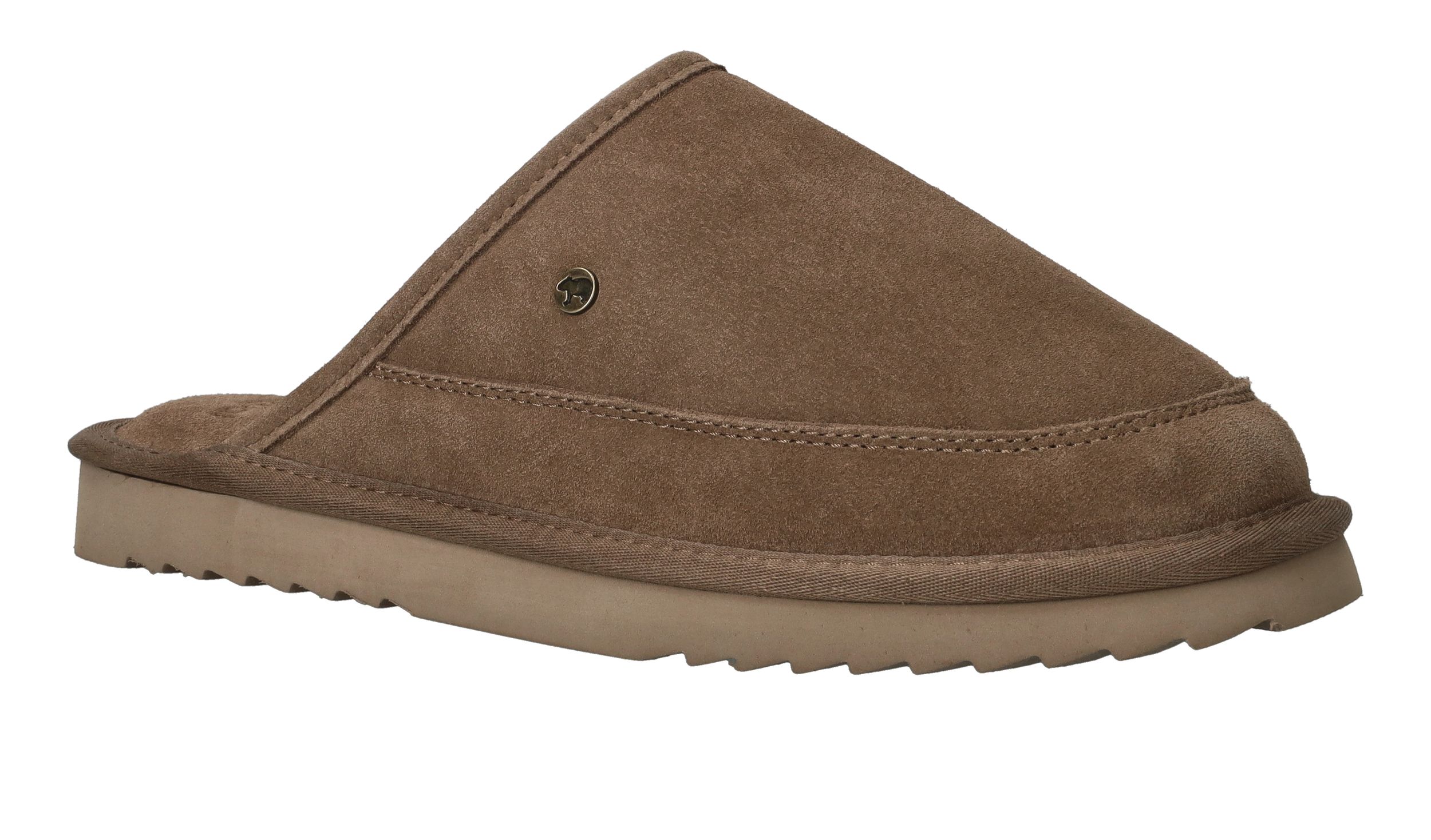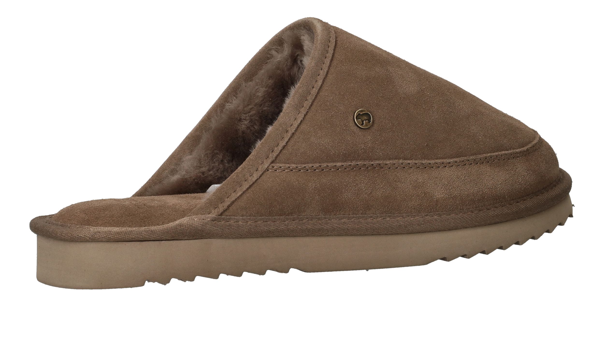 Zoek je een trendy en warme pantoffel? Ga dan voor deze taupe kleur Warmbat Cowra muil voor heren!