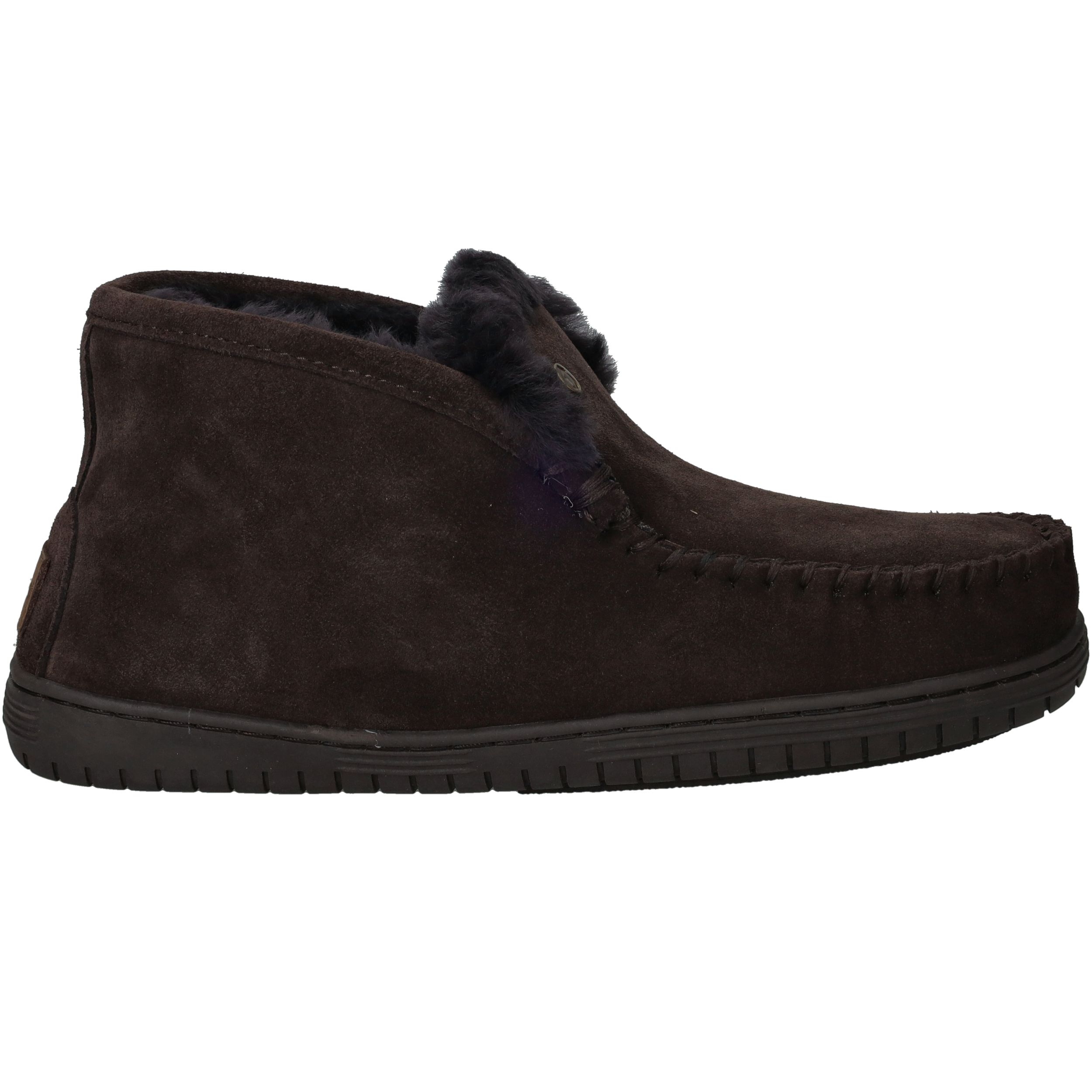 De Warmbat Darwino pantoffel voor heren in een rijke donkerbruine kleur biedt ultiem comfort en warmte tijdens de koude dagen. Het zachte suède aan de buitenkant zorgt voor een luxe uitstraling, terwijl de binnenzijde met echte wol gevoerd is voor een heerlijk zacht gevoel. De natuurlijke wolvoering reguleert warmte en vocht, waardoor je voeten behaaglijk en droog blijven. Dankzij de stevige rubberen zool loop je stabiel en comfortabel in huis en zelfs kort buiten.