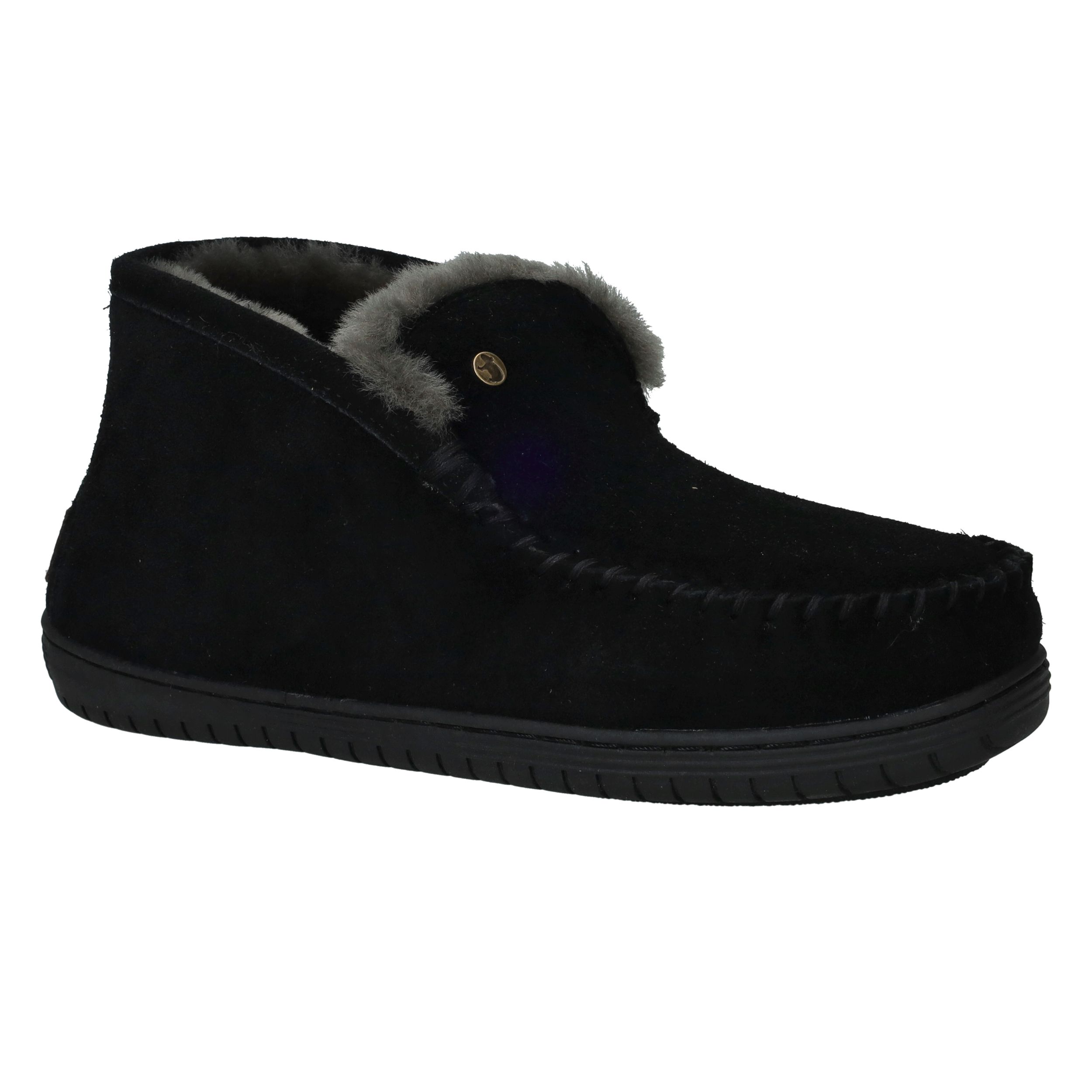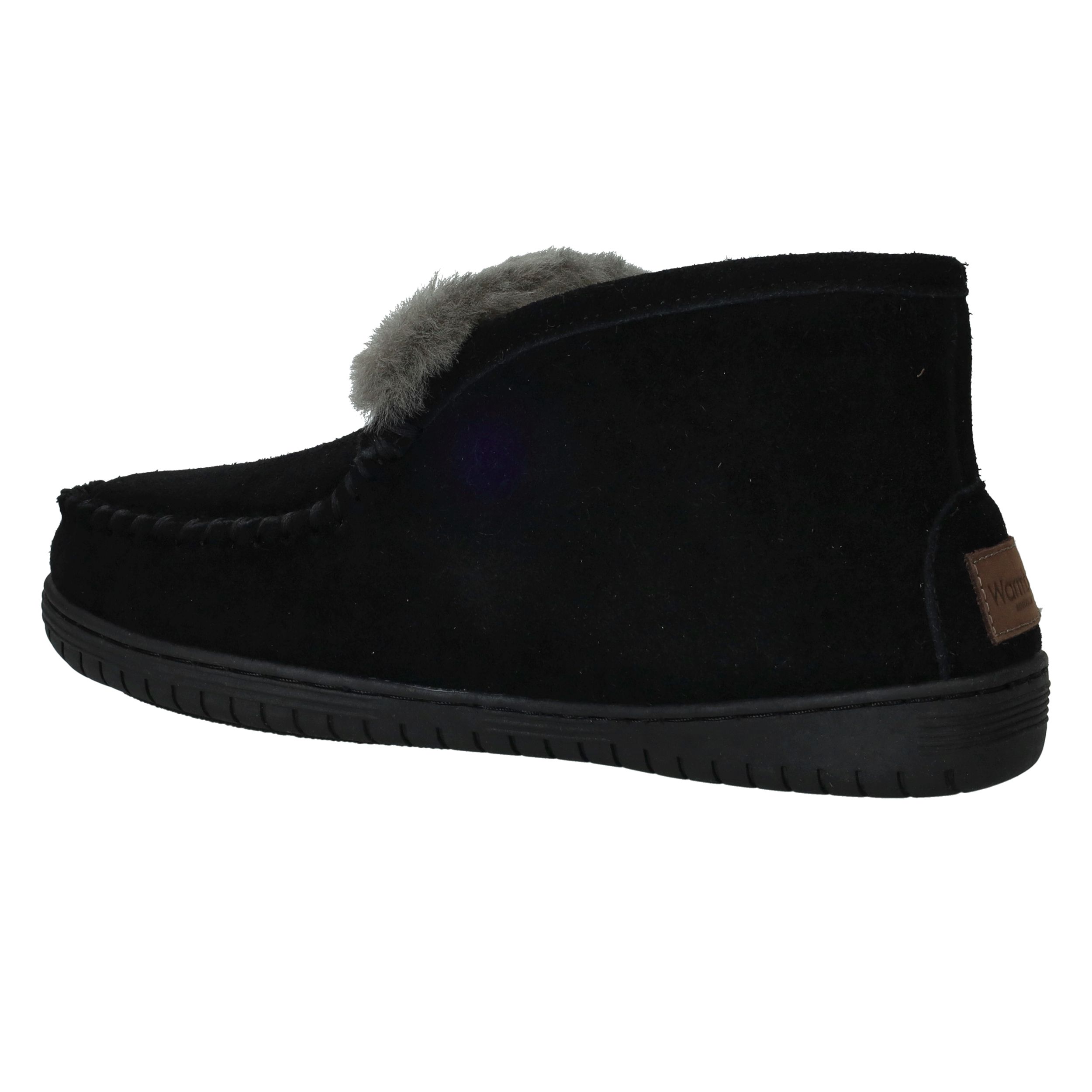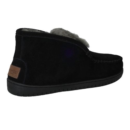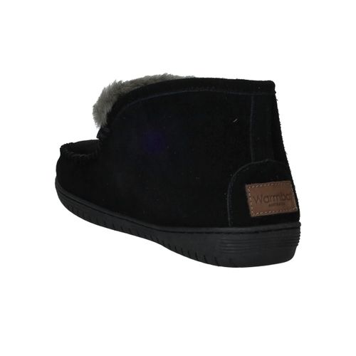De Warmbat Darwino pantoffel voor heren is de perfecte combinatie van comfort, warmte en stijl. Deze pantoffel in klassiek zwart is gemaakt van hoogwaardig suède en voorzien van een zachte wollen voering die je voeten behaaglijk warm houdt. Dankzij de ademende eigenschappen van wol blijven je voeten droog en fris, terwijl de stevige zool zorgt voor uitstekende grip en stabiliteit – ideaal voor gebruik in huis of op korte stukjes buiten.