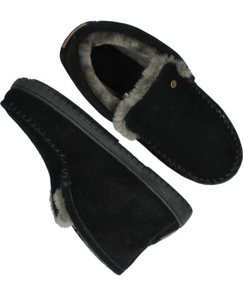 - Het suède bovenwerk voelt soepel aan en geeft de pantoffel een luxe, tijdloze uitstraling.