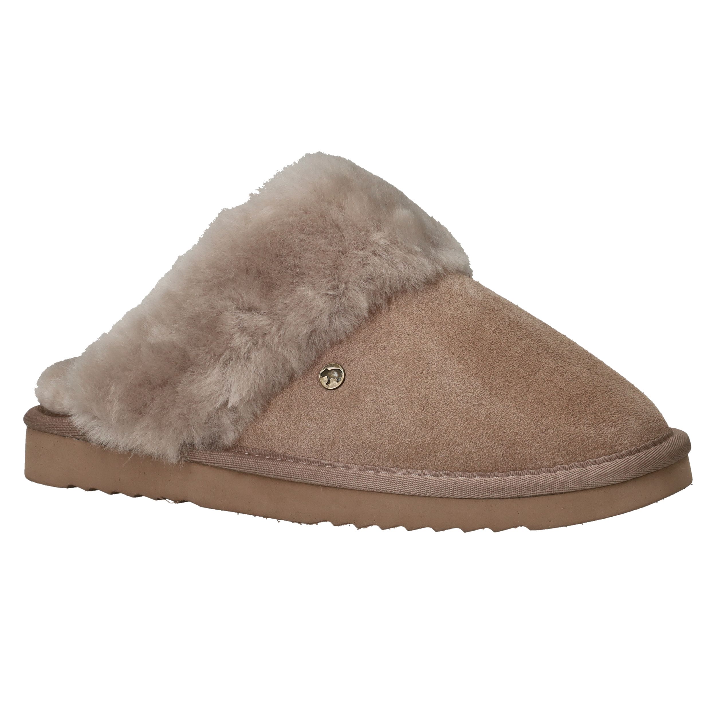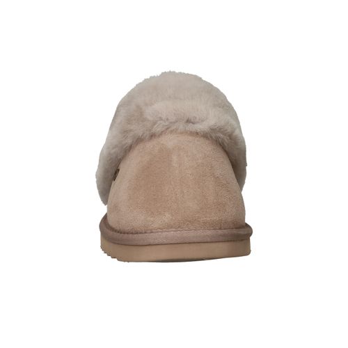 - Het suède bovenwerk voelt luxueus aan en geeft de pantoffel een stijlvolle uitstraling in een neutrale taupe kleur.