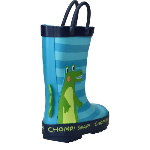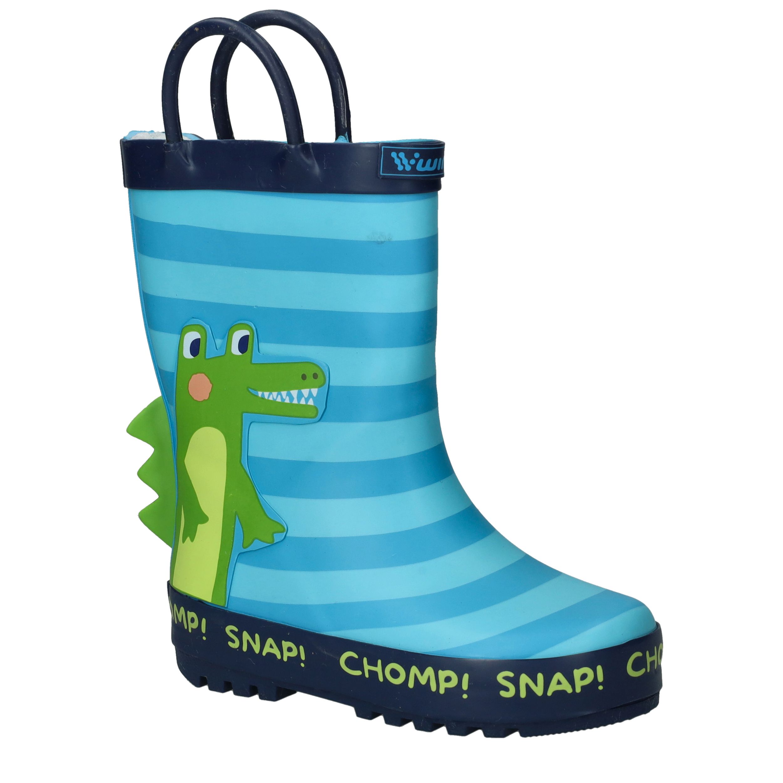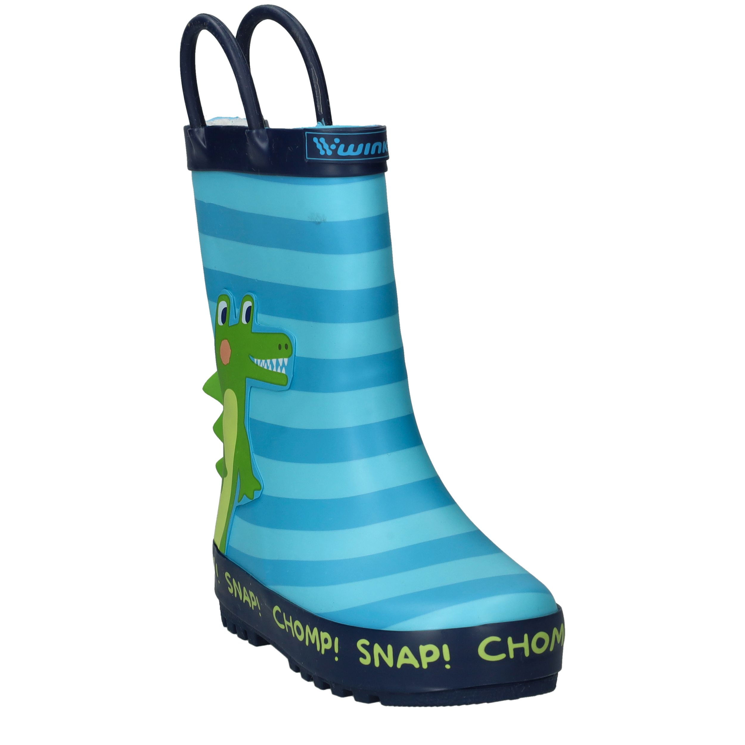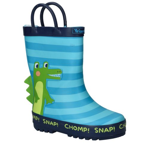 Dit vrolijke WINK regenlaarsje is warm gevoerd en perfect voor koude, regenachtige dagen. De blauwe laars is voorzien van een leuke krokodillenprint met 3D-details, waardoor elke stap een avontuur wordt.
