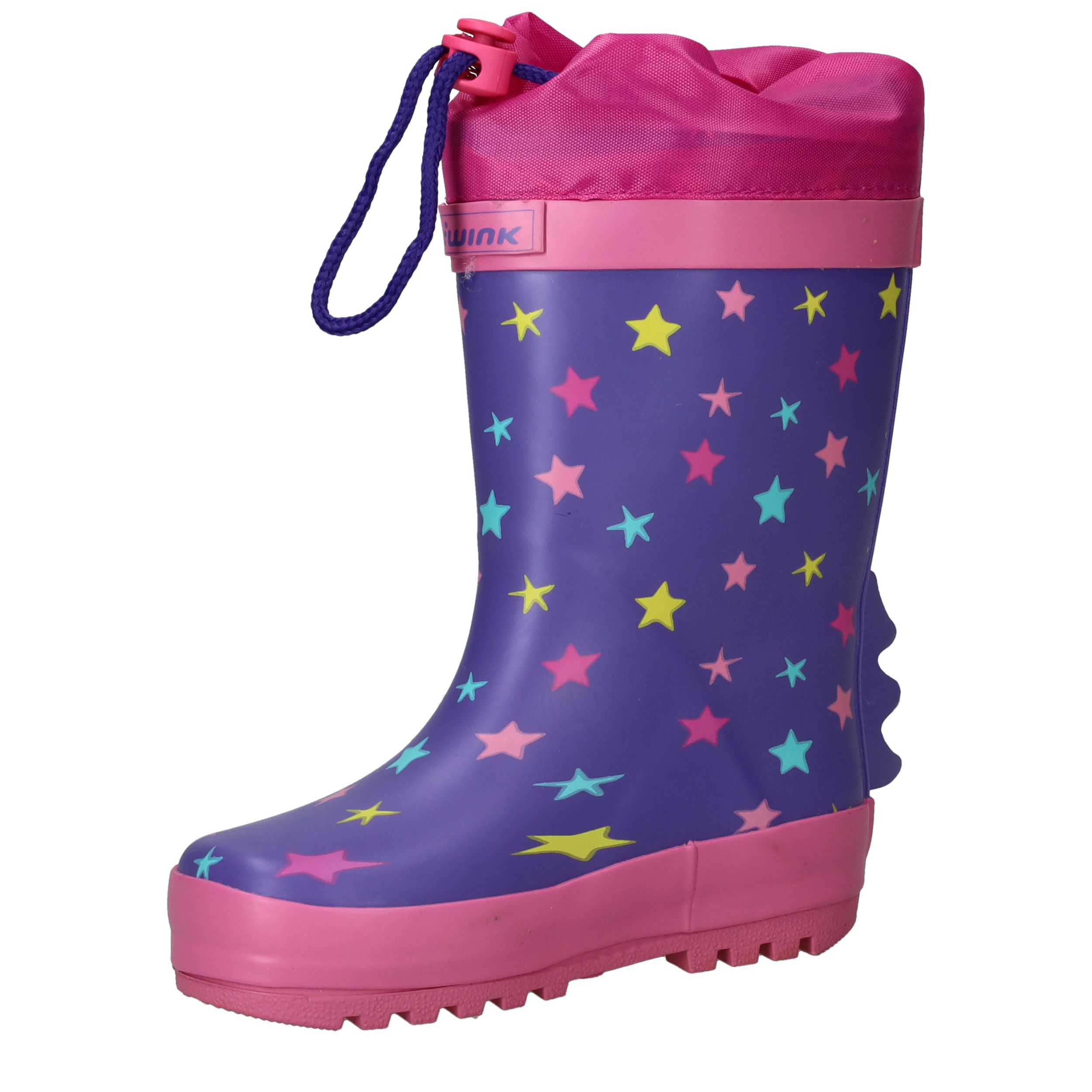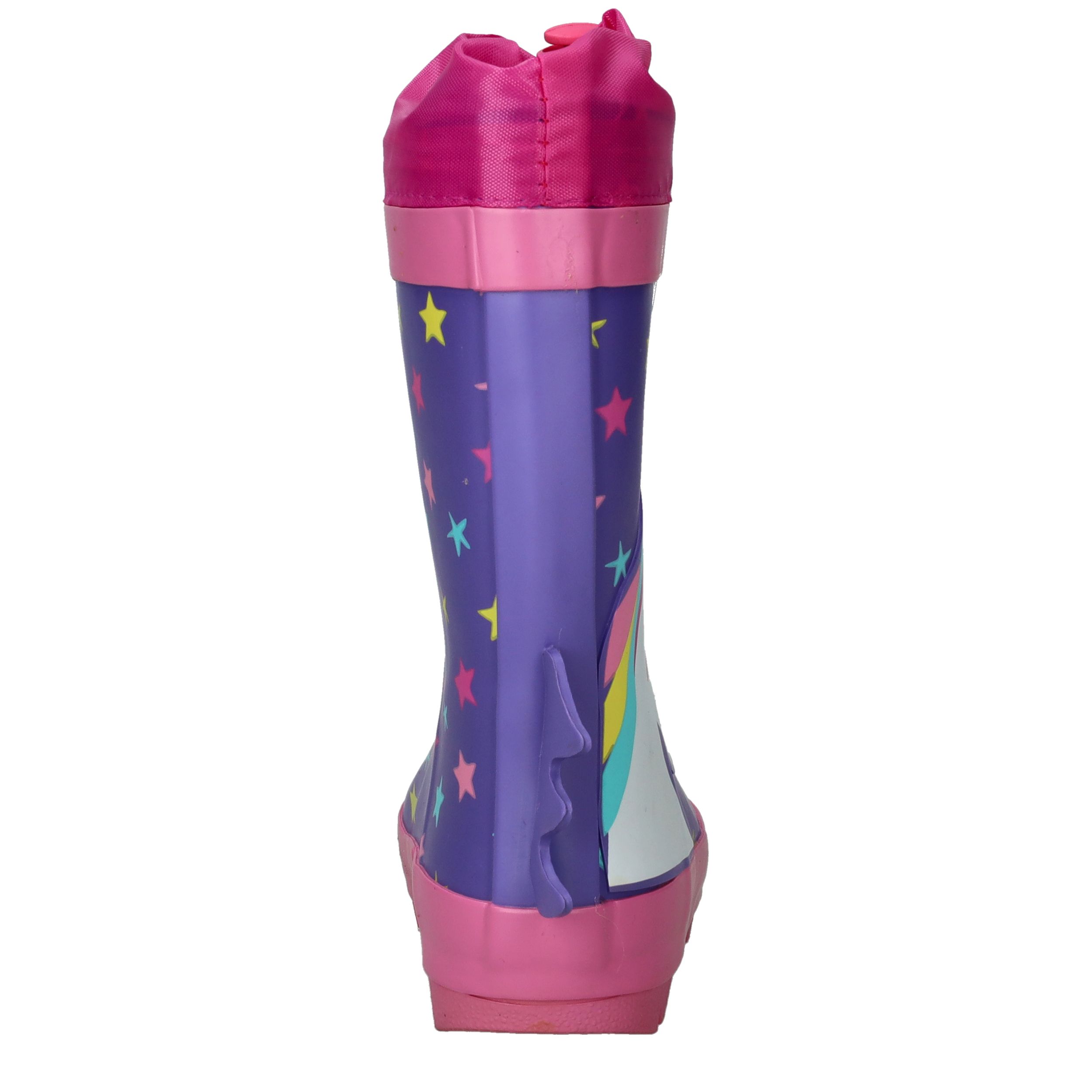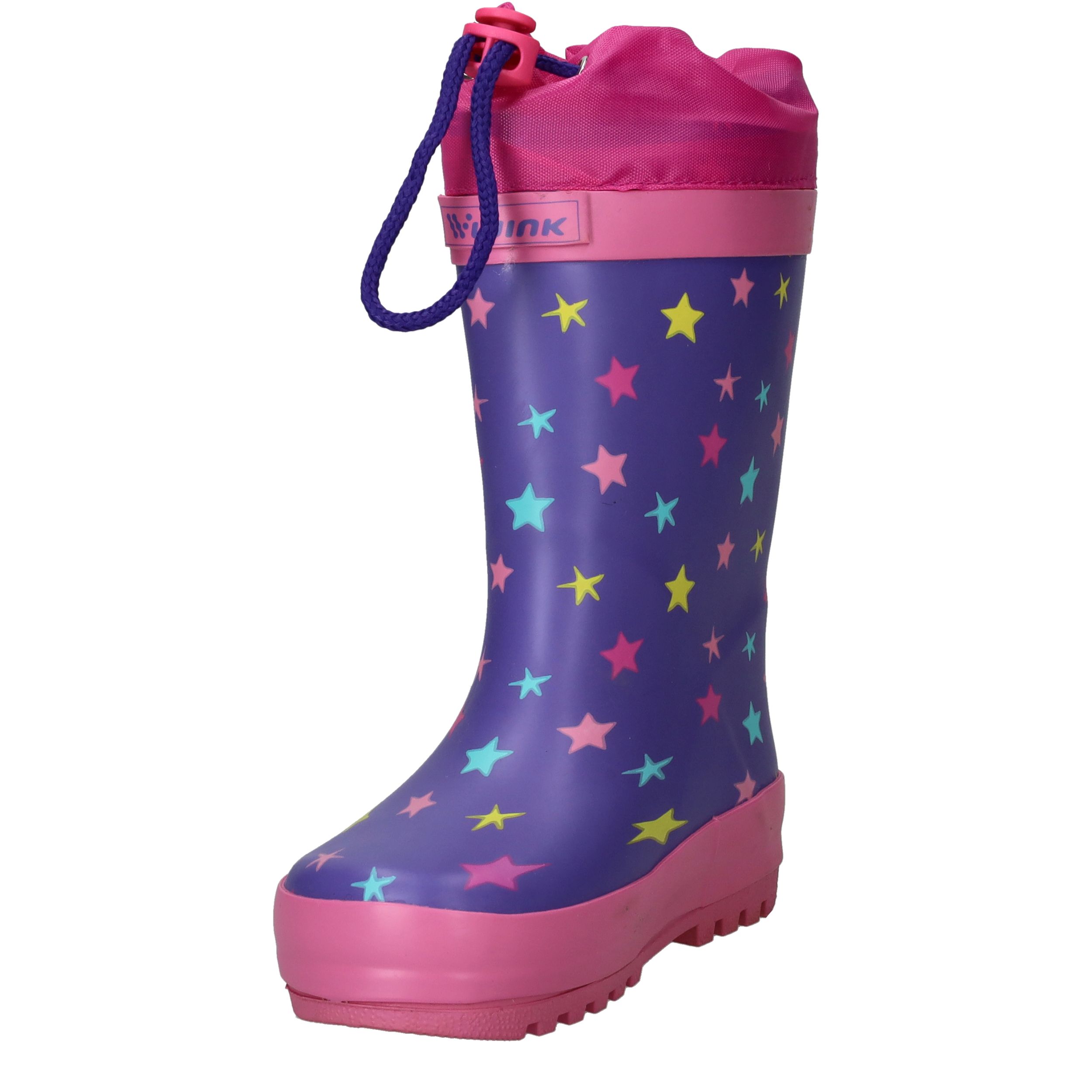 Dit paar paarse WINK regenlaarsjes voor meiden is heerlijk warm gevoerd en voorzien van een schattige unicornprint. Het laarsje heeft een stevige zool en een trekkoord aan de bovenkant zodat er geen regen of kou naar binnen komt.