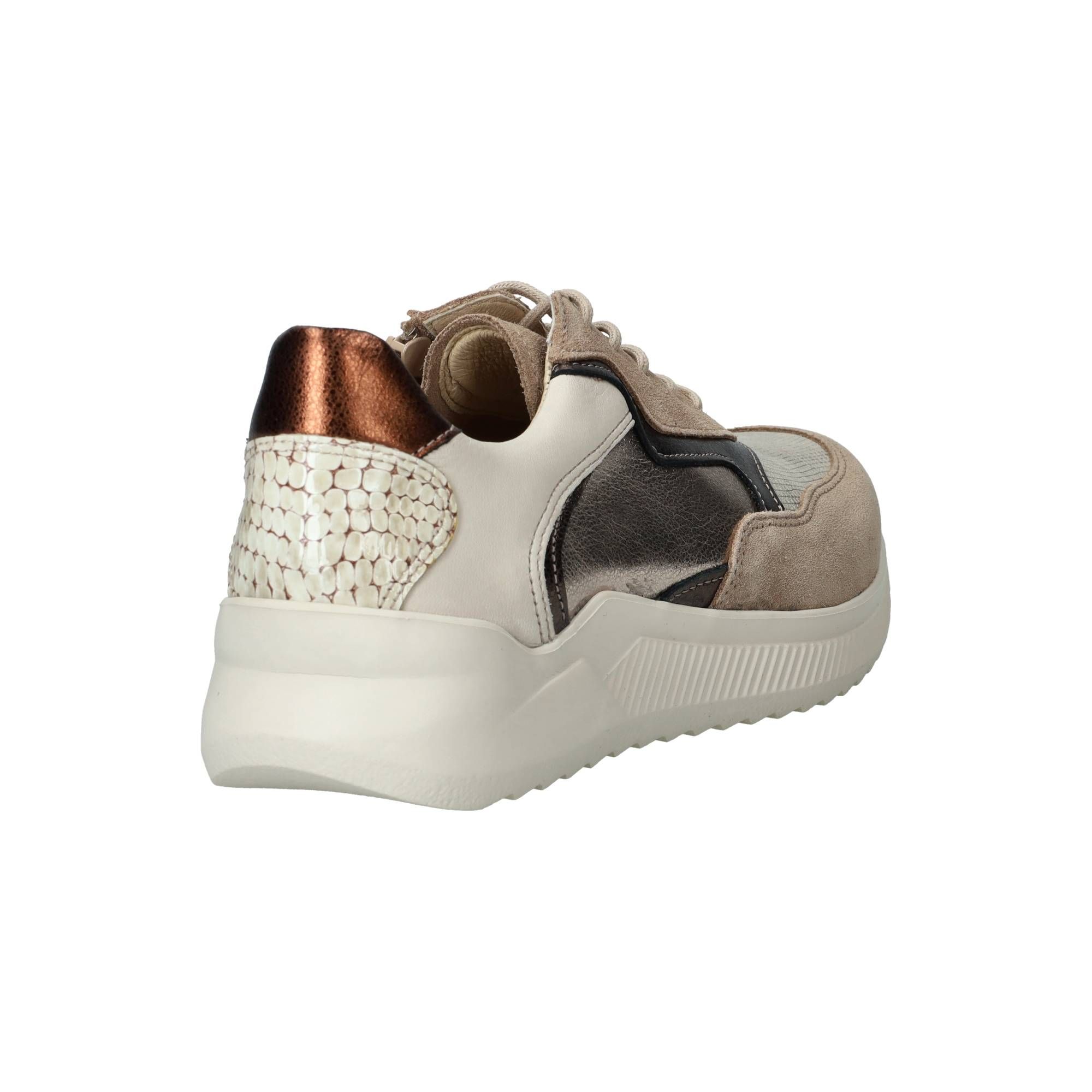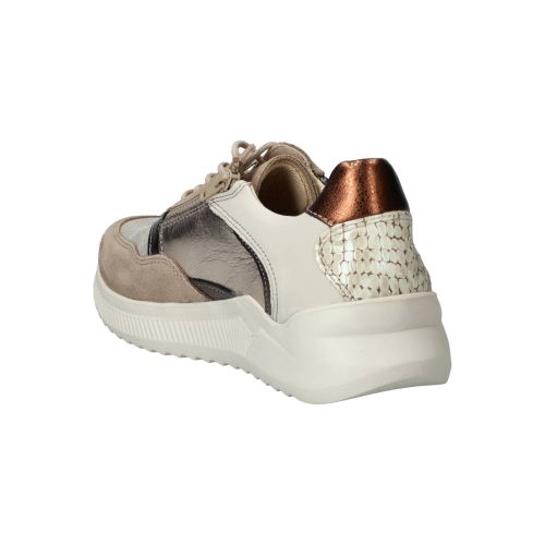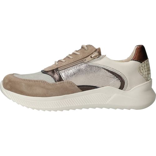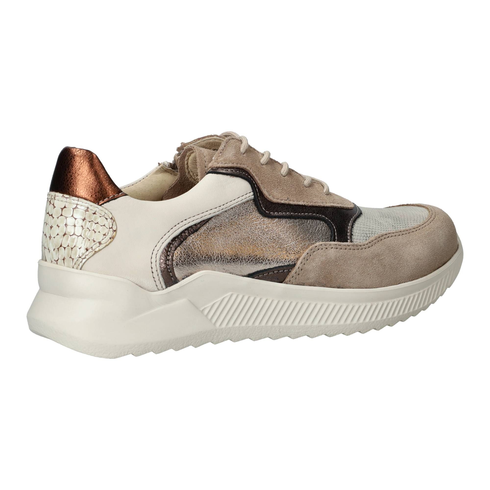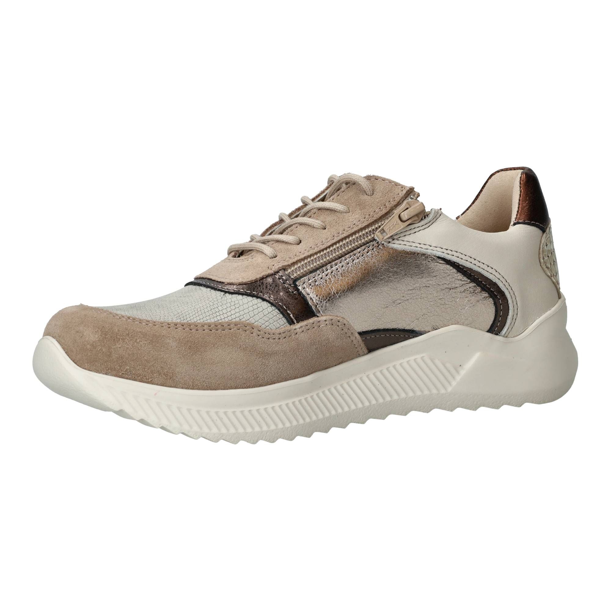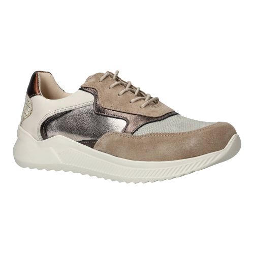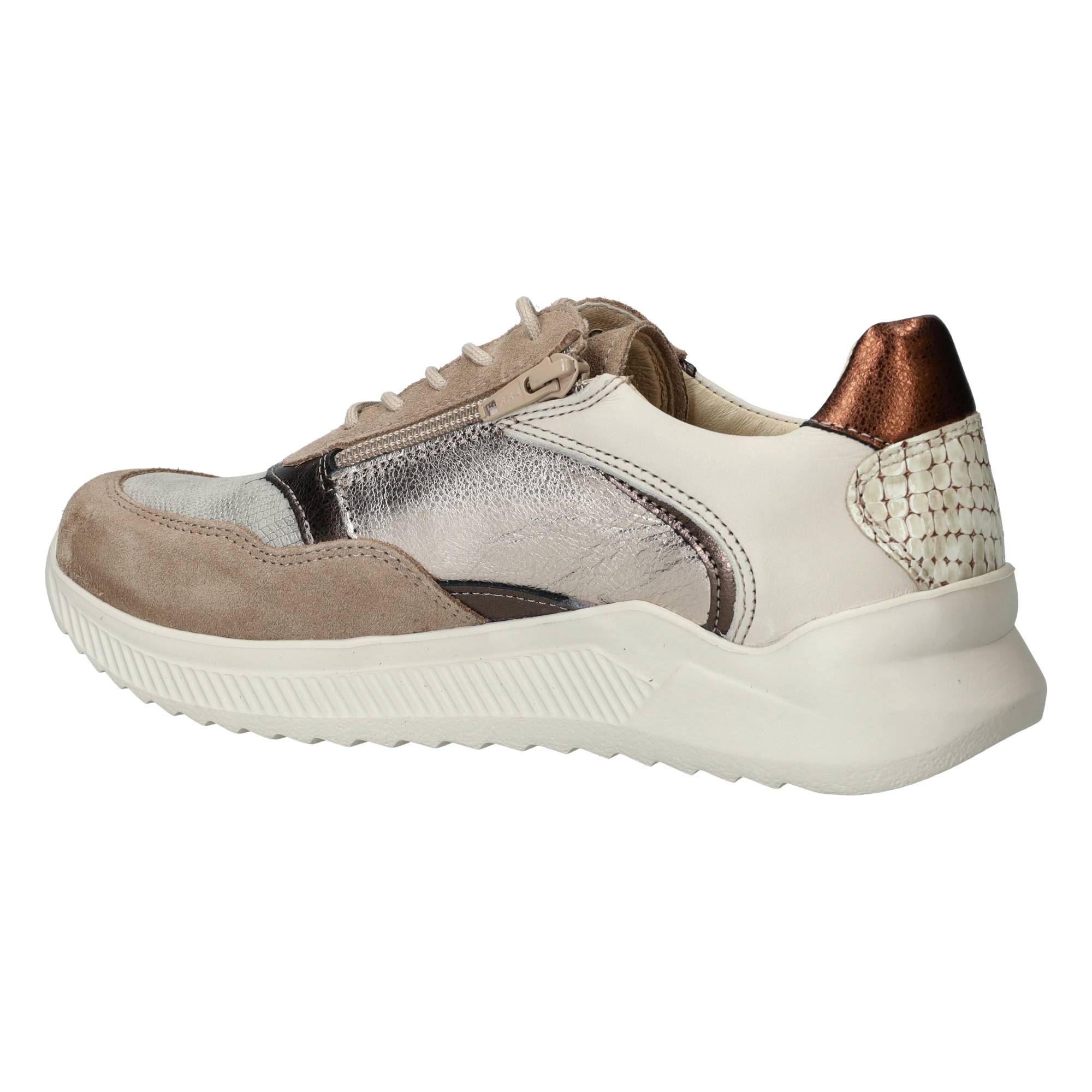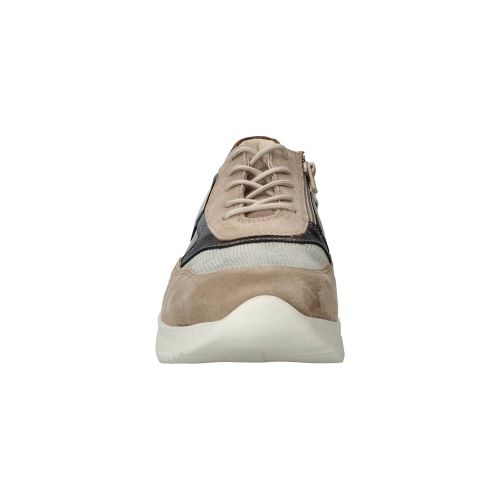 De dames sneakers van Wolky, model E-Way S2F, zijn een fijne keuze voor de vrouw die comfort en een verzorgde uitstraling zoekt. Deze beige sneakers hebben een vriendelijke en veelzijdige kleur die mooi combineert met diverse outfits. Het ontwerp is zowel vlot als klassiek, waardoor de schoen geschikt is voor vele gelegenheden. Tijdens het lopen zorgt de doordachte constructie voor een prettige demping, wat bijdraagt aan een comfortabel gevoel, zelfs na een lange dag staan of bewegen. De schoen omsluit de voet op een fijne manier, wat bijdraagt aan een rustige afwikkeling en een prettige drukverdeling van de voet.- De schoen sluit met veters en een rits, zodat je de pasvorm gemakkelijk aanpast en de schoen tegelijkertijd snel aan- en uittrekt.