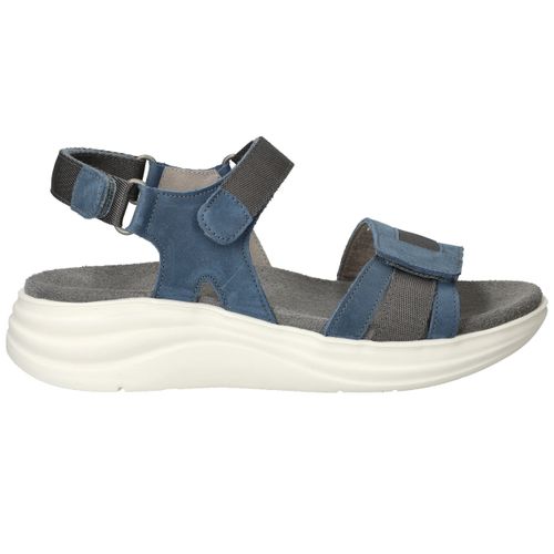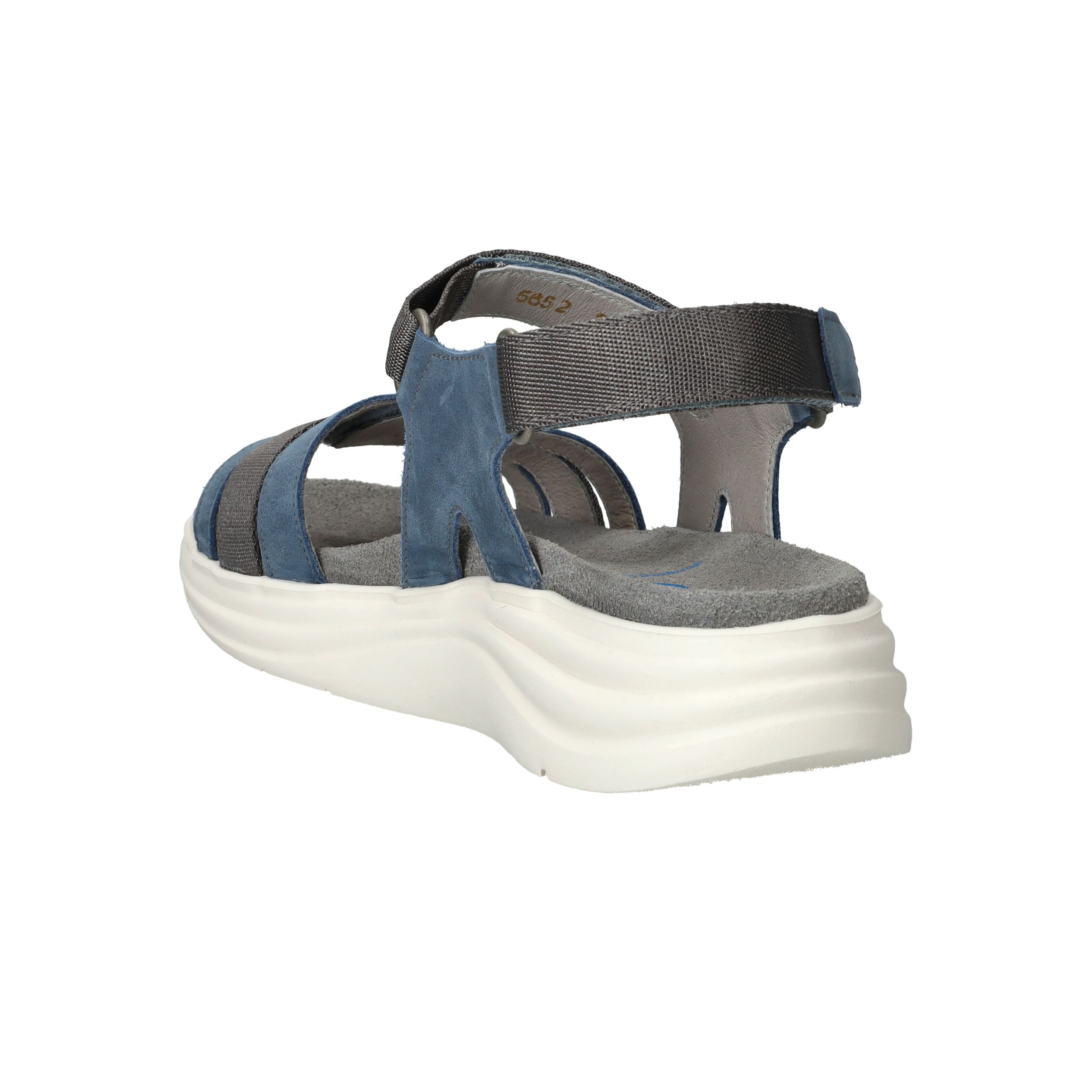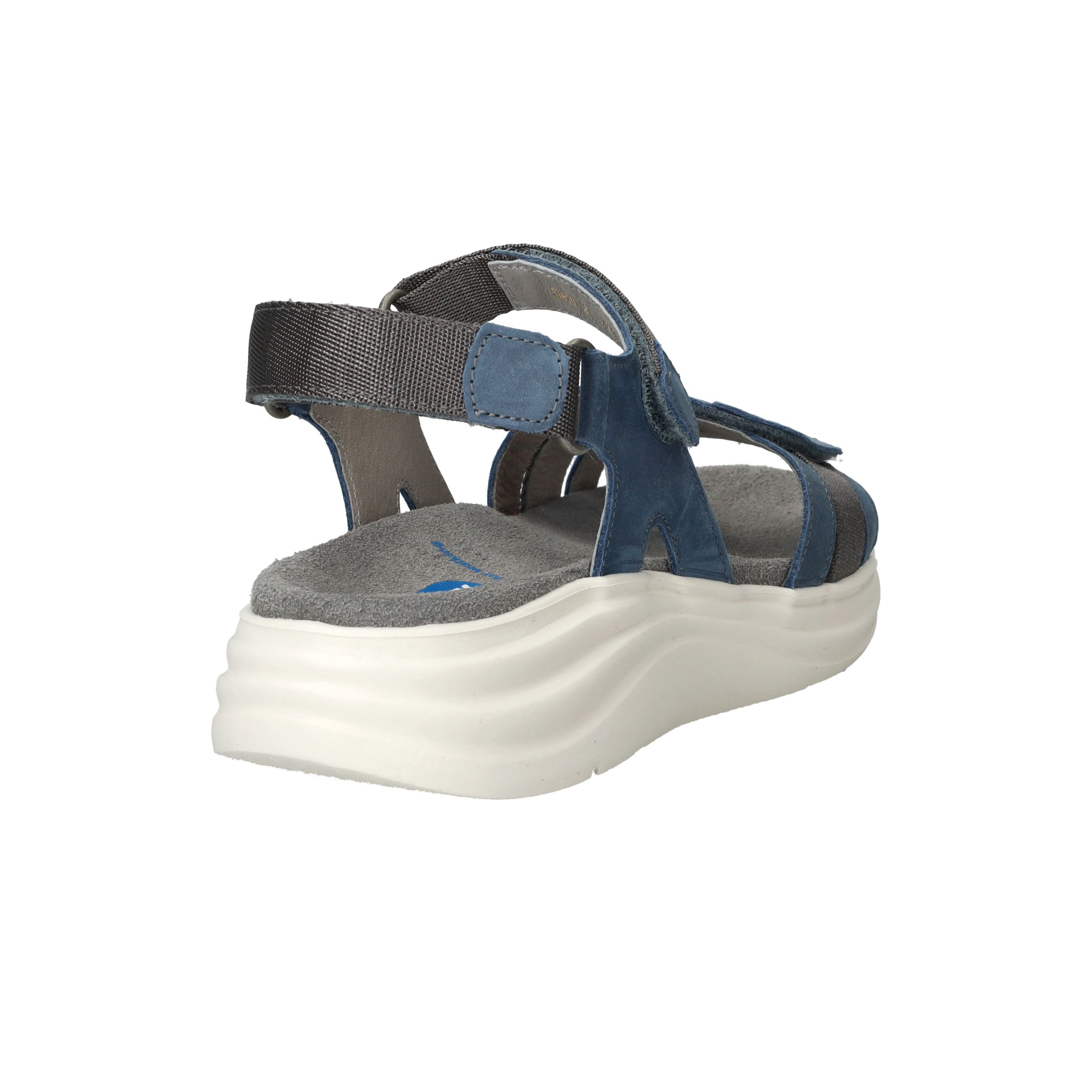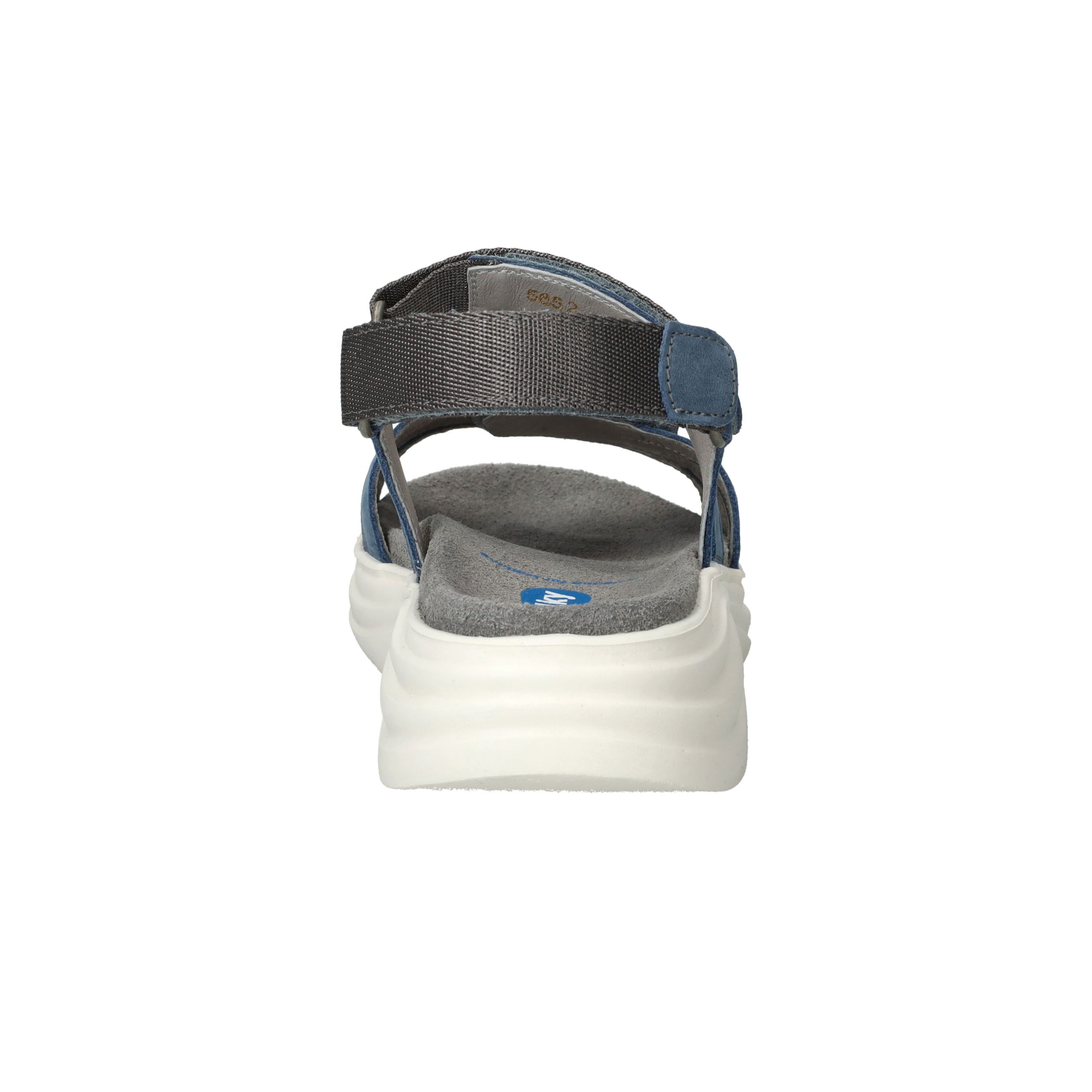 Deze sportieve sandaal van Wolky is de perfecte keuze voor actieve dagen met veel comfort. Het model is uitgevoerd in blauw leer gecombineerd met grijs textiel en heeft een stoere en frisse uitstraling. De dikke, lichtgewicht zool zorgt voor optimale schokdemping en stabiliteit, waardoor je moeiteloos urenlang comfortabel loopt. Ideaal voor vakanties, stadswandelingen of dagelijkse avonturen!