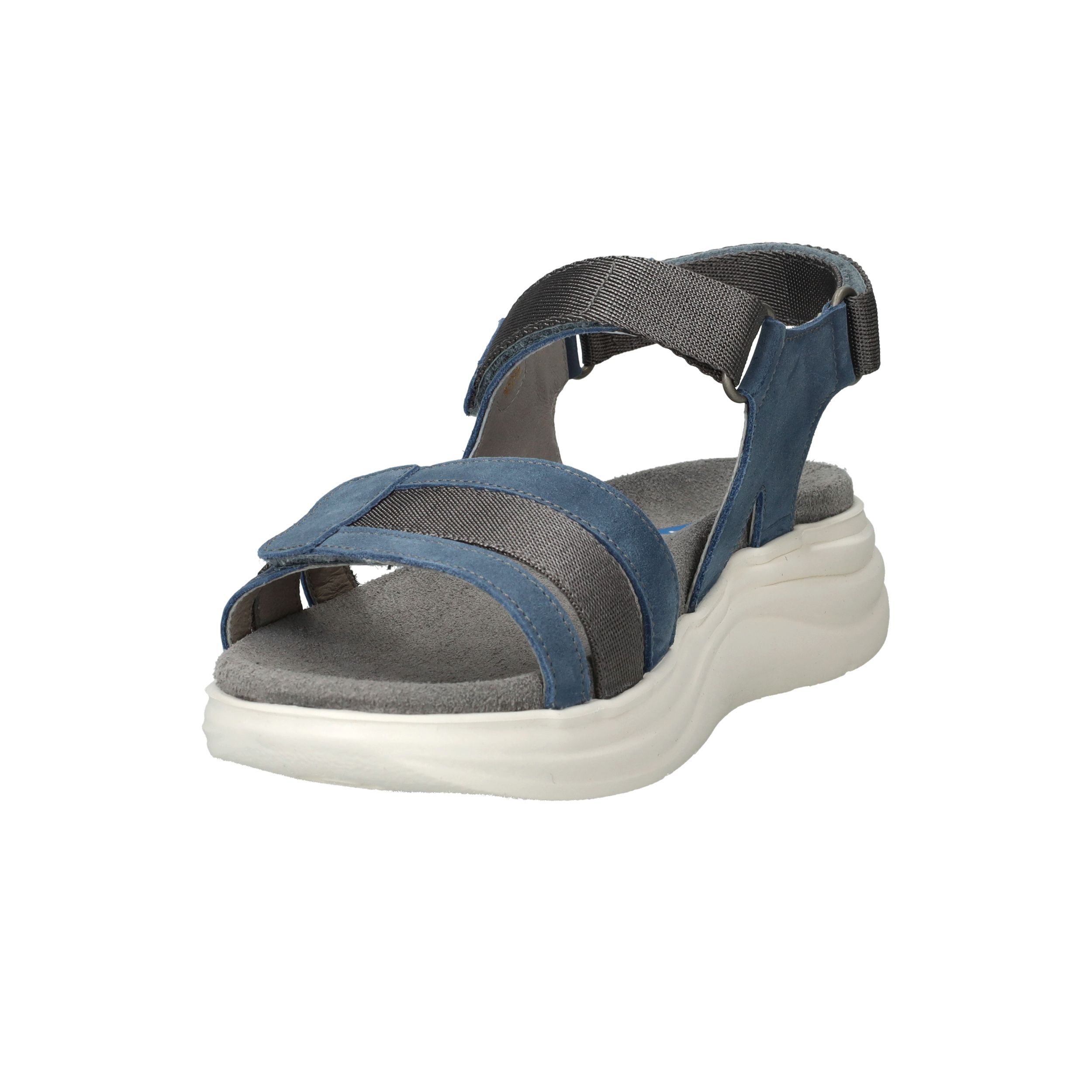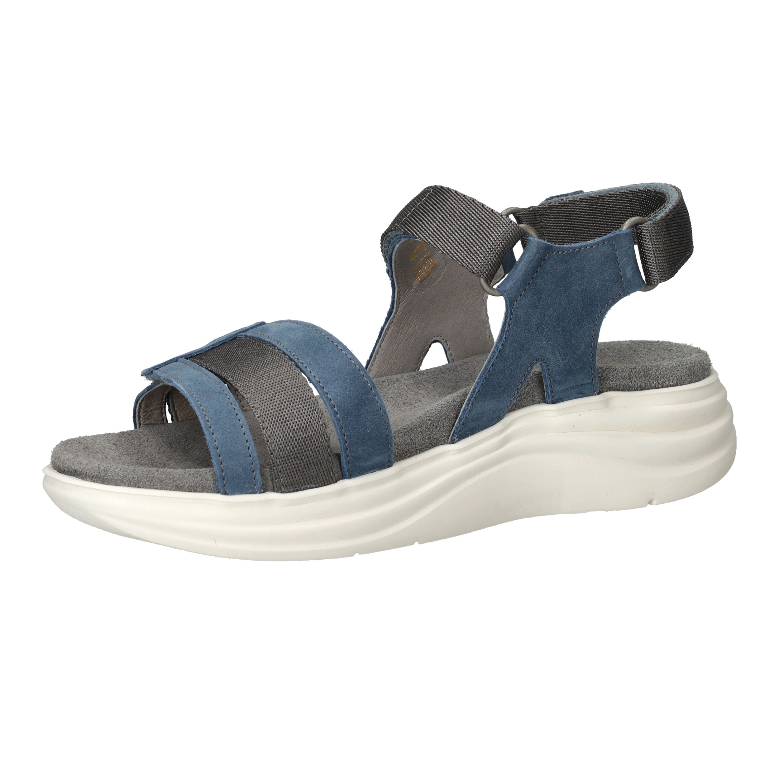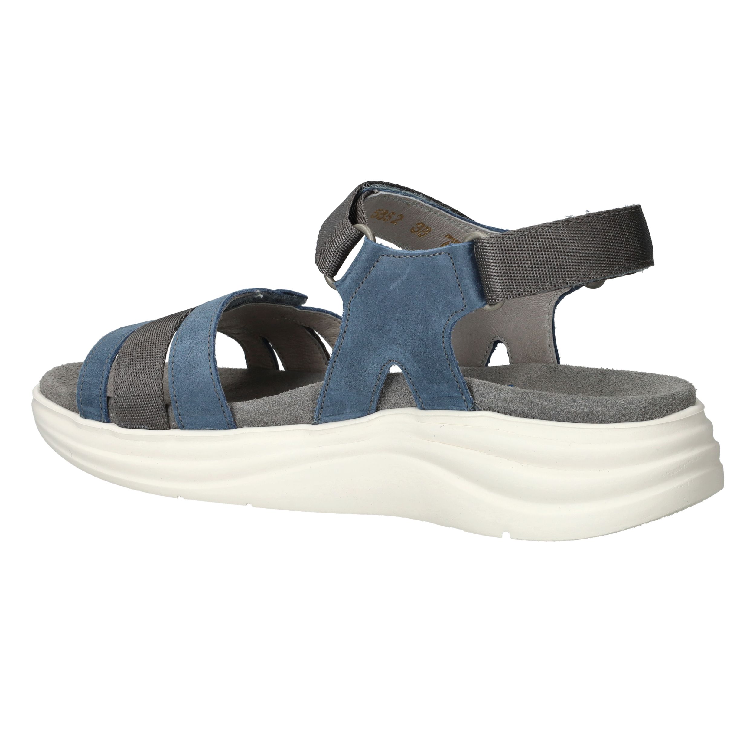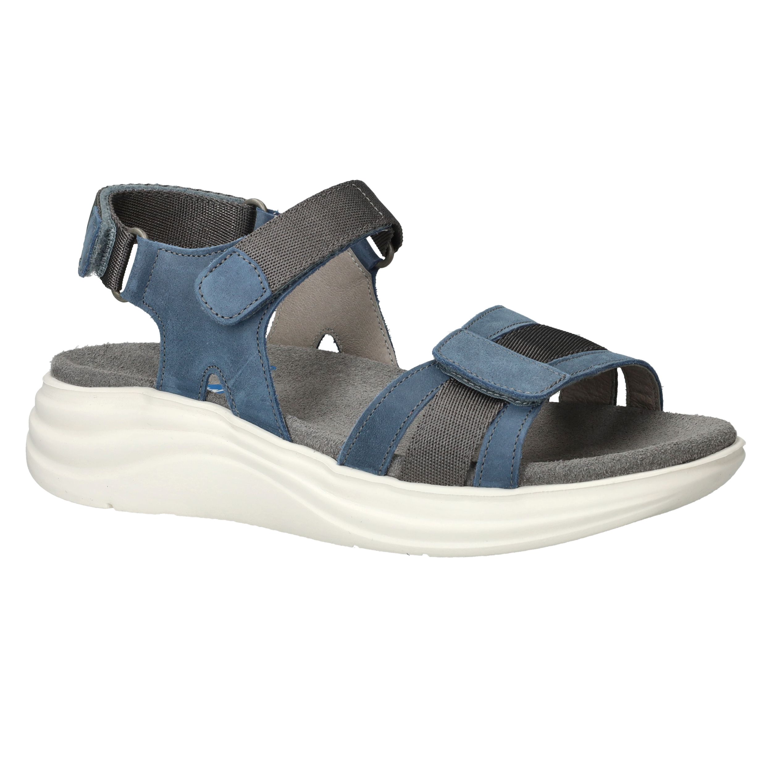 Deze sportieve sandaal van Wolky is de perfecte keuze voor actieve dagen met veel comfort. Het model is uitgevoerd in blauw leer gecombineerd met grijs textiel en heeft een stoere en frisse uitstraling. De dikke, lichtgewicht zool zorgt voor optimale schokdemping en stabiliteit, waardoor je moeiteloos urenlang comfortabel loopt. Ideaal voor vakanties, stadswandelingen of dagelijkse avonturen!