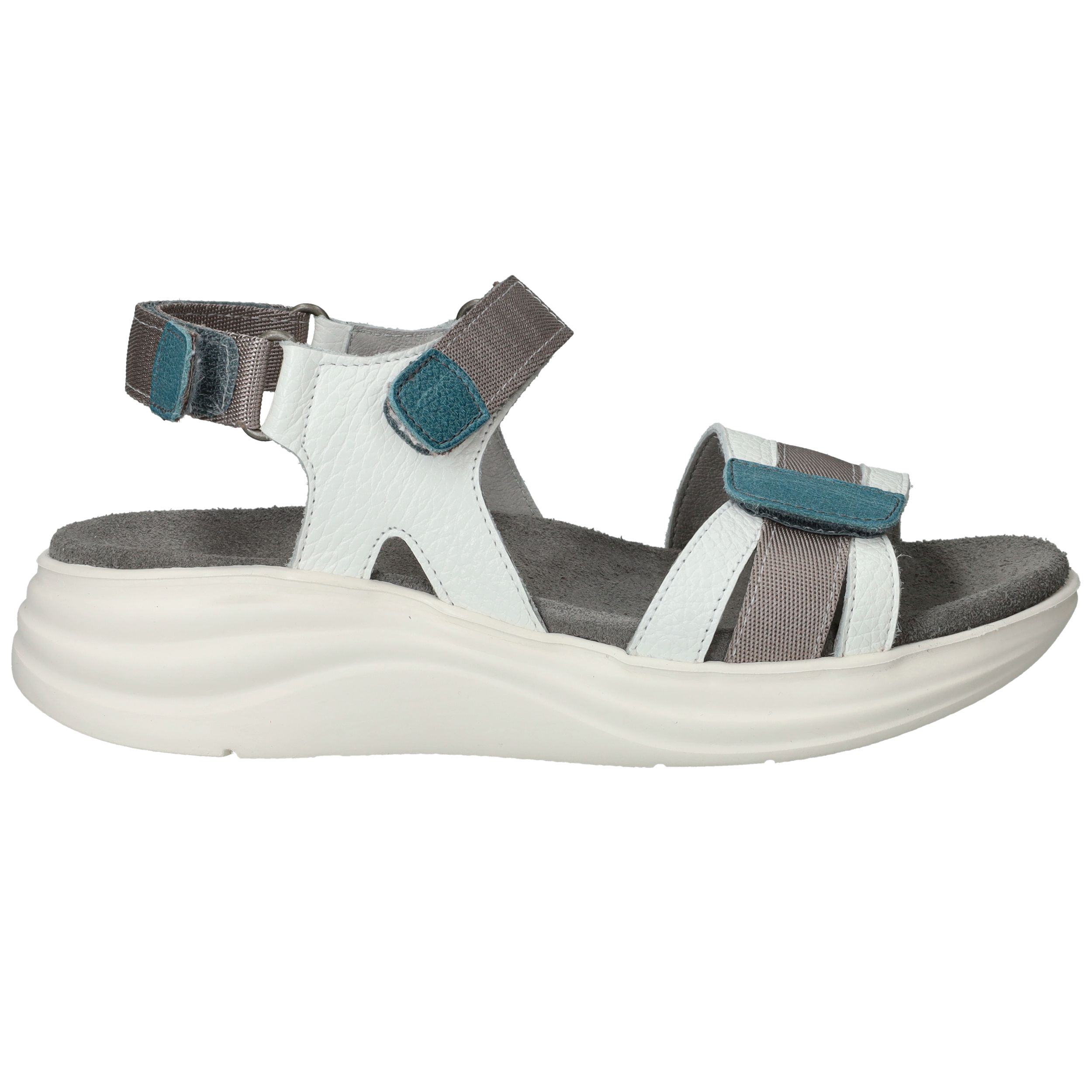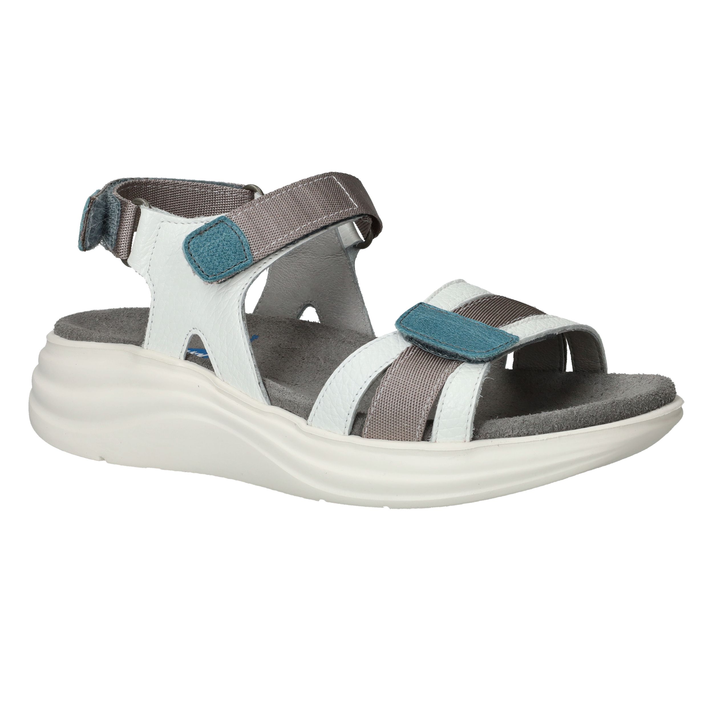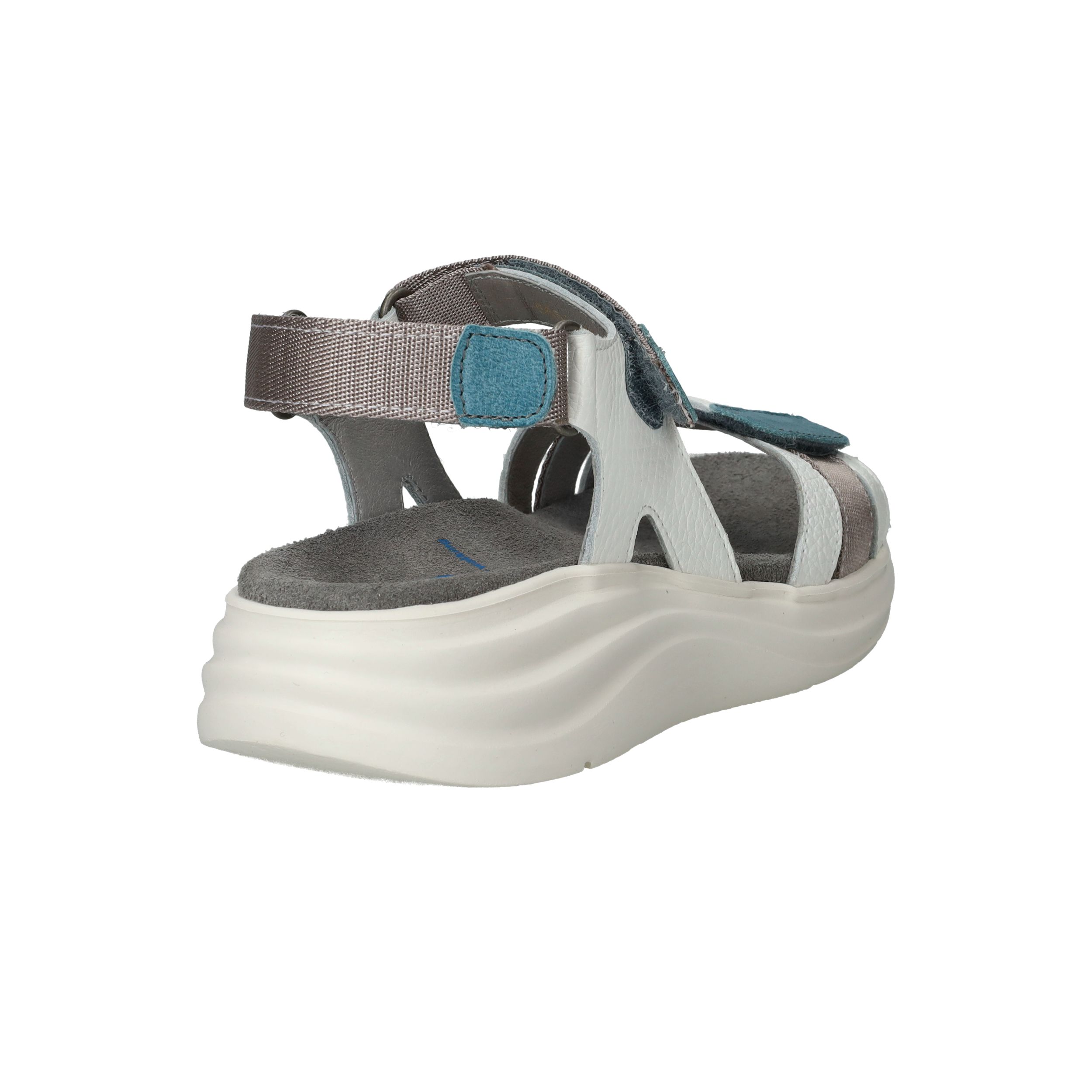 Deze comfortabele sandaal van Wolky is ideaal voor wie graag actief en modieus de zomer doorkomt. Het model is uitgevoerd in wit leer met grijze en blauwe accenten, wat zorgt voor een sportieve en frisse uitstraling. De dikke, lichtgewicht zool biedt uitstekende demping en ondersteuning, waardoor je moeiteloos lange dagen op pad kunt. Perfect voor wandelingen, citytrips of gewoon dagelijks comfort!