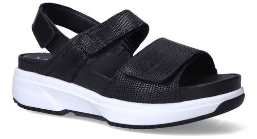 De Xsensible Aruba Stretchwalker voor dames in het zwart met glanzende details is een perfecte combinatie van stijl en comfort. Deze sandalen zijn ontworpen voor dames n die waarde hechten aan een uitstekende pasvorm en blije voeten.