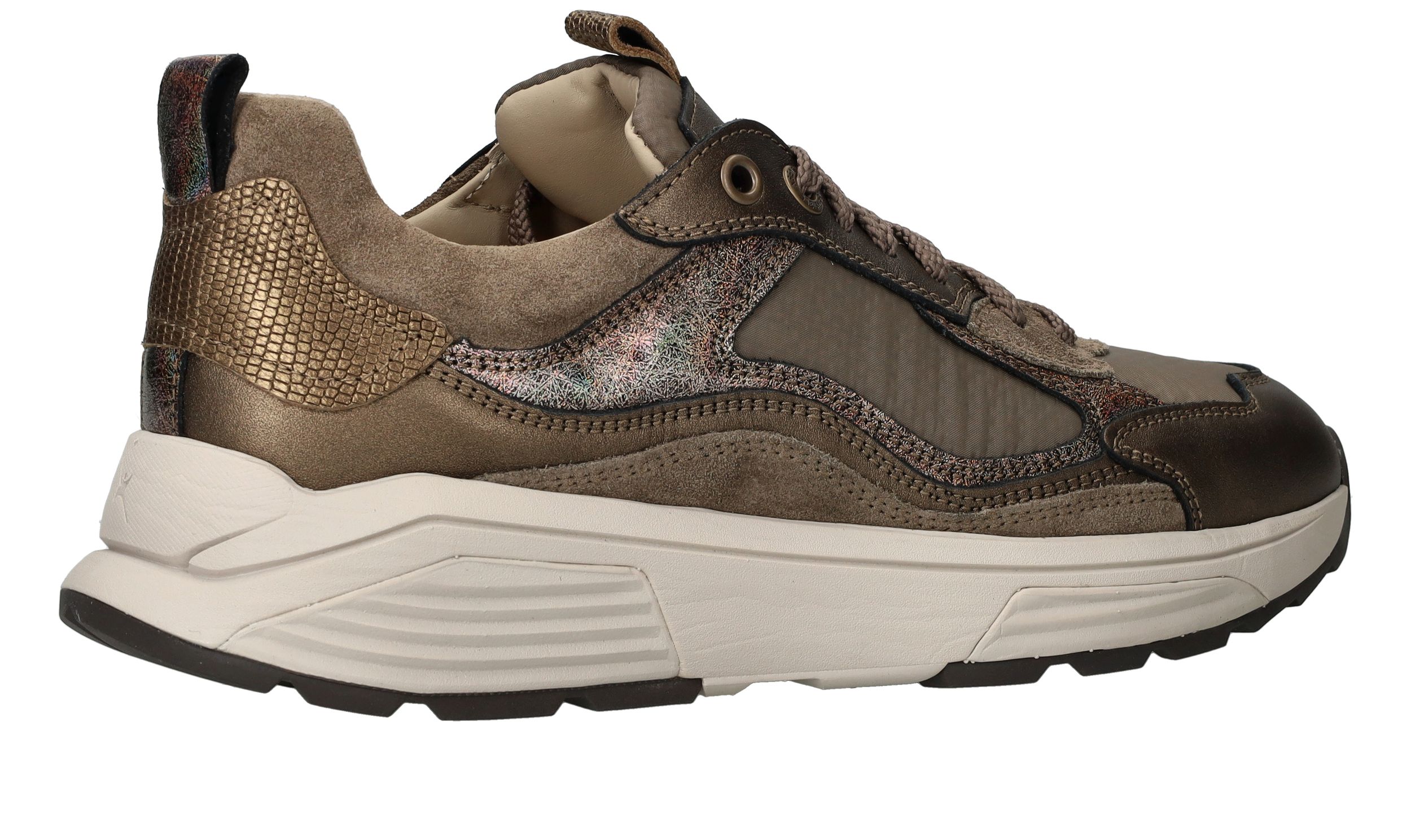 - De schoenen hebben een prachtige groene/taupe kleur en metallic details.